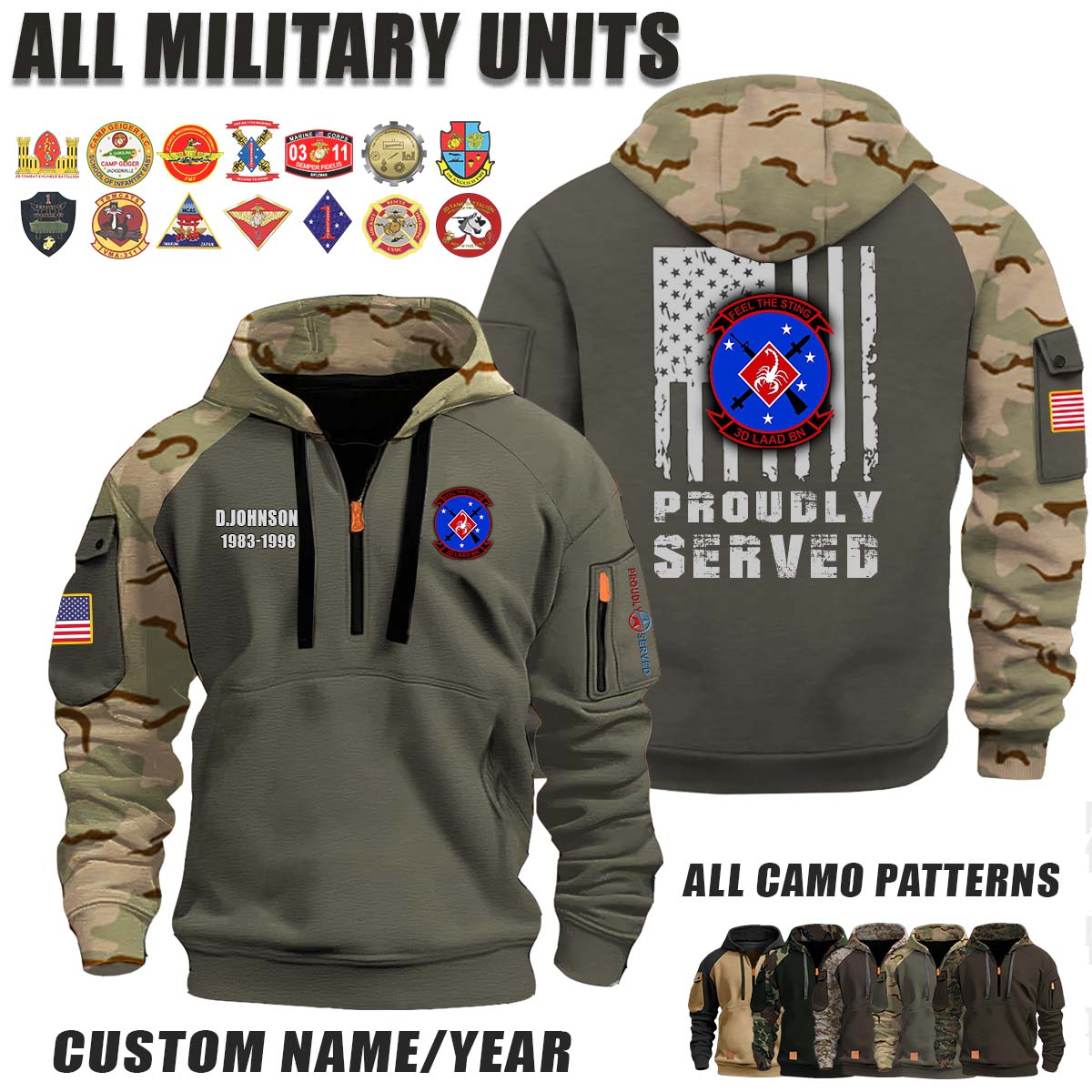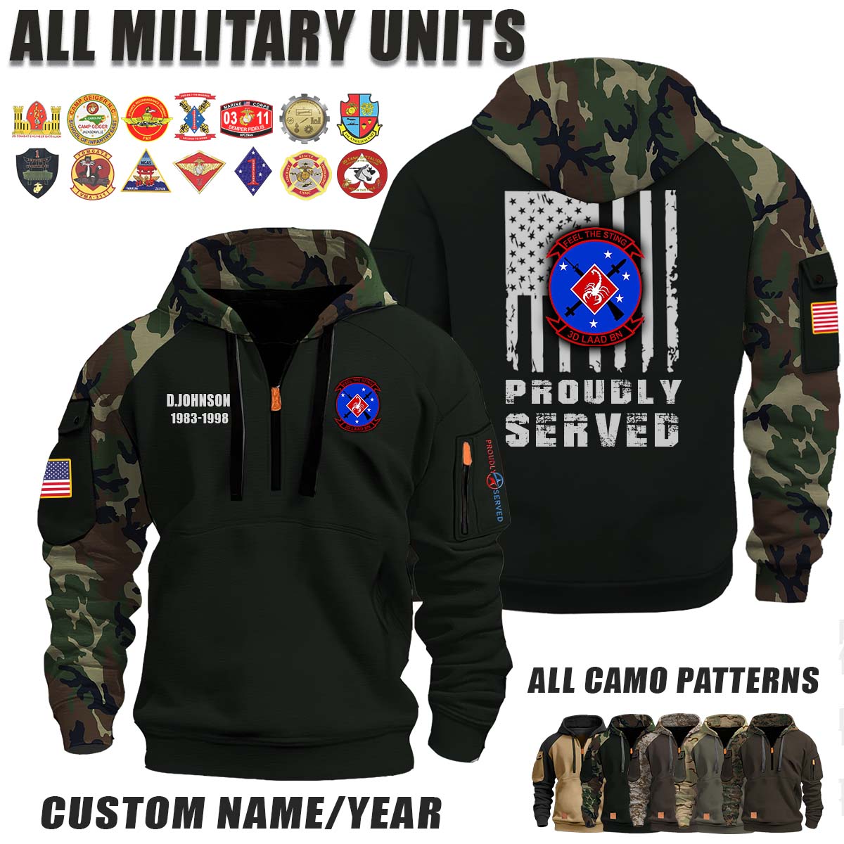 This 3rd LAAD 3rd Low Altitude Air Defense Battalion_Camo Halfzip Hoodie lets you customize your Branch, Unit, Role, Rank, and Years Served — so your service, sacrifice, and pride live on.