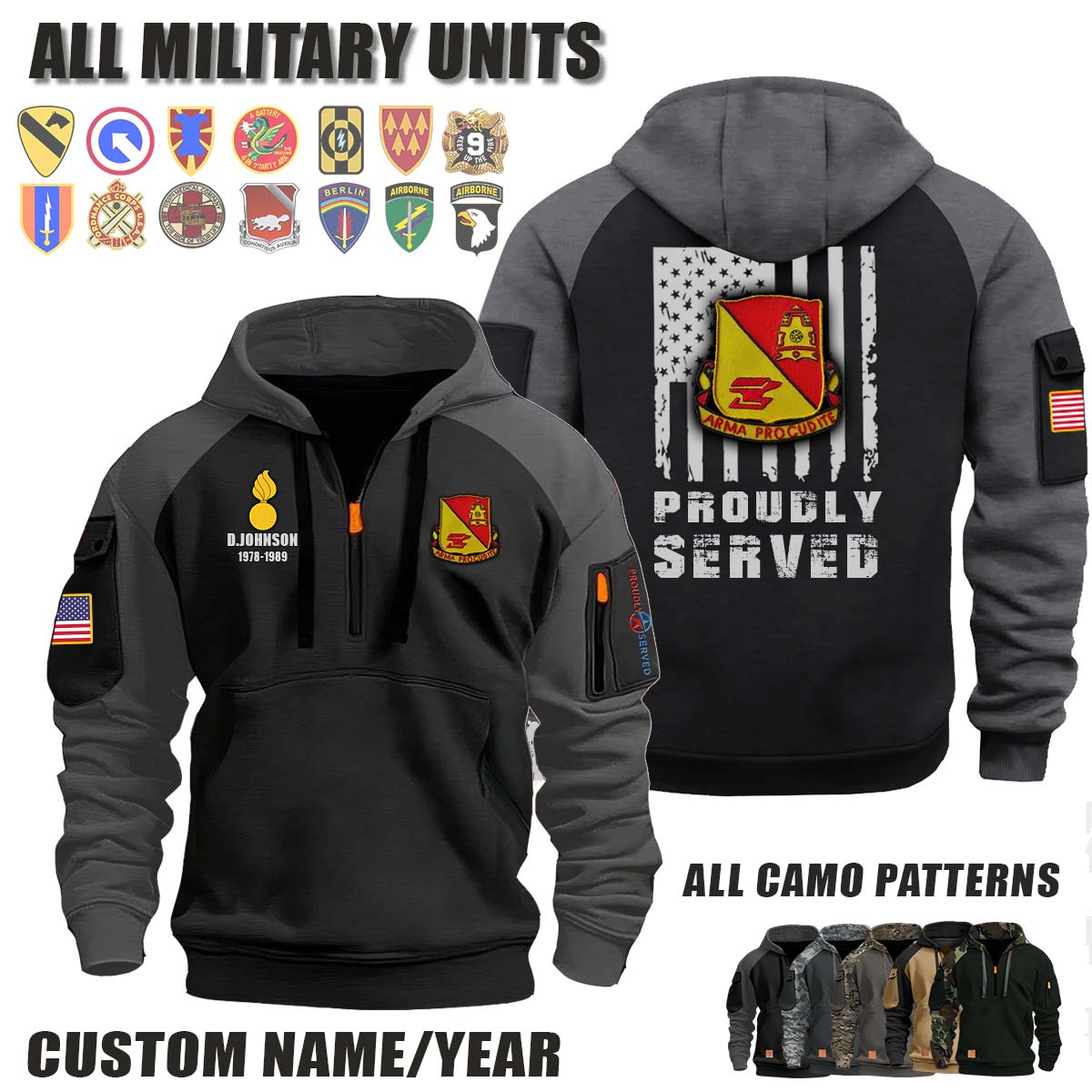 This 40th MAINT BN 40th Maintenance Battalion_Camo Halfzip Hoodie lets you customize your Branch, Unit, Role, Rank, and Years Served — so your service, sacrifice, and pride live on.