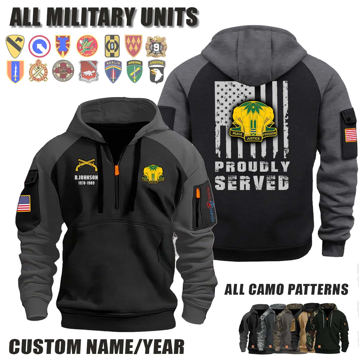 This 40th MP BN 40th Military Police Battalion_Camo Halfzip Hoodie lets you customize your Branch, Unit, Role, Rank, and Years Served — so your service, sacrifice, and pride live on.