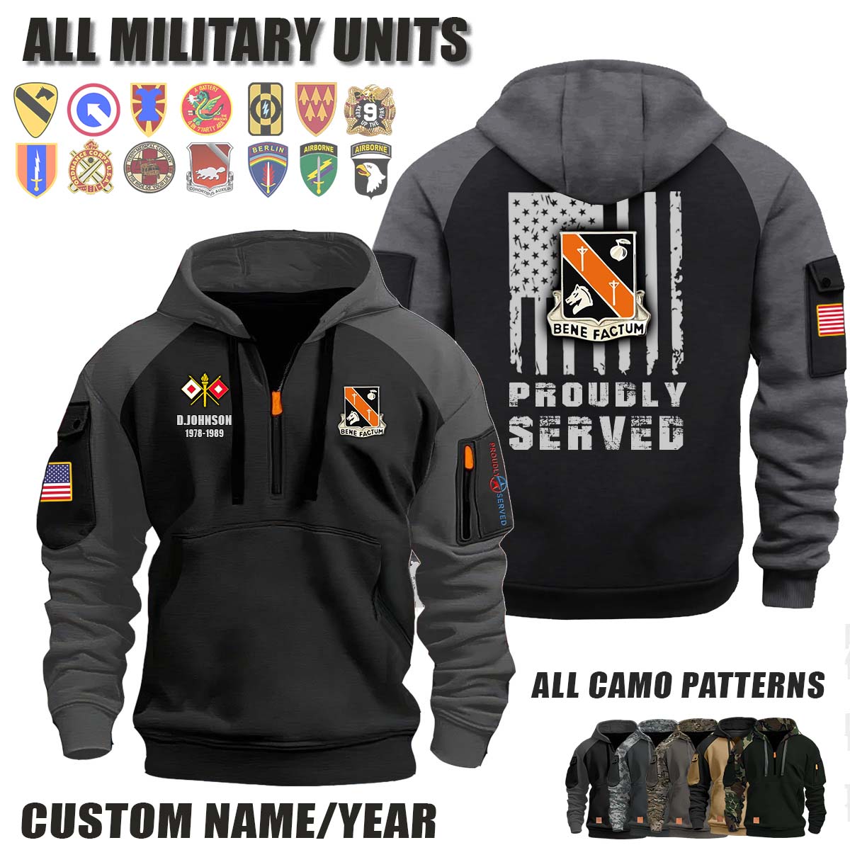 This 40th SIG BN 40th Signal Battalion_Camo Halfzip Hoodie lets you customize your Branch, Unit, Role, Rank, and Years Served — so your service, sacrifice, and pride live on.