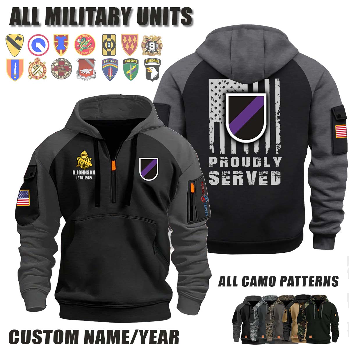This 412th CA BN 412th Civil Affairs Battalion (Airborne)_Camo Halfzip Hoodie lets you customize your Branch, Unit, Role, Rank, and Years Served — so your service, sacrifice, and pride live on.