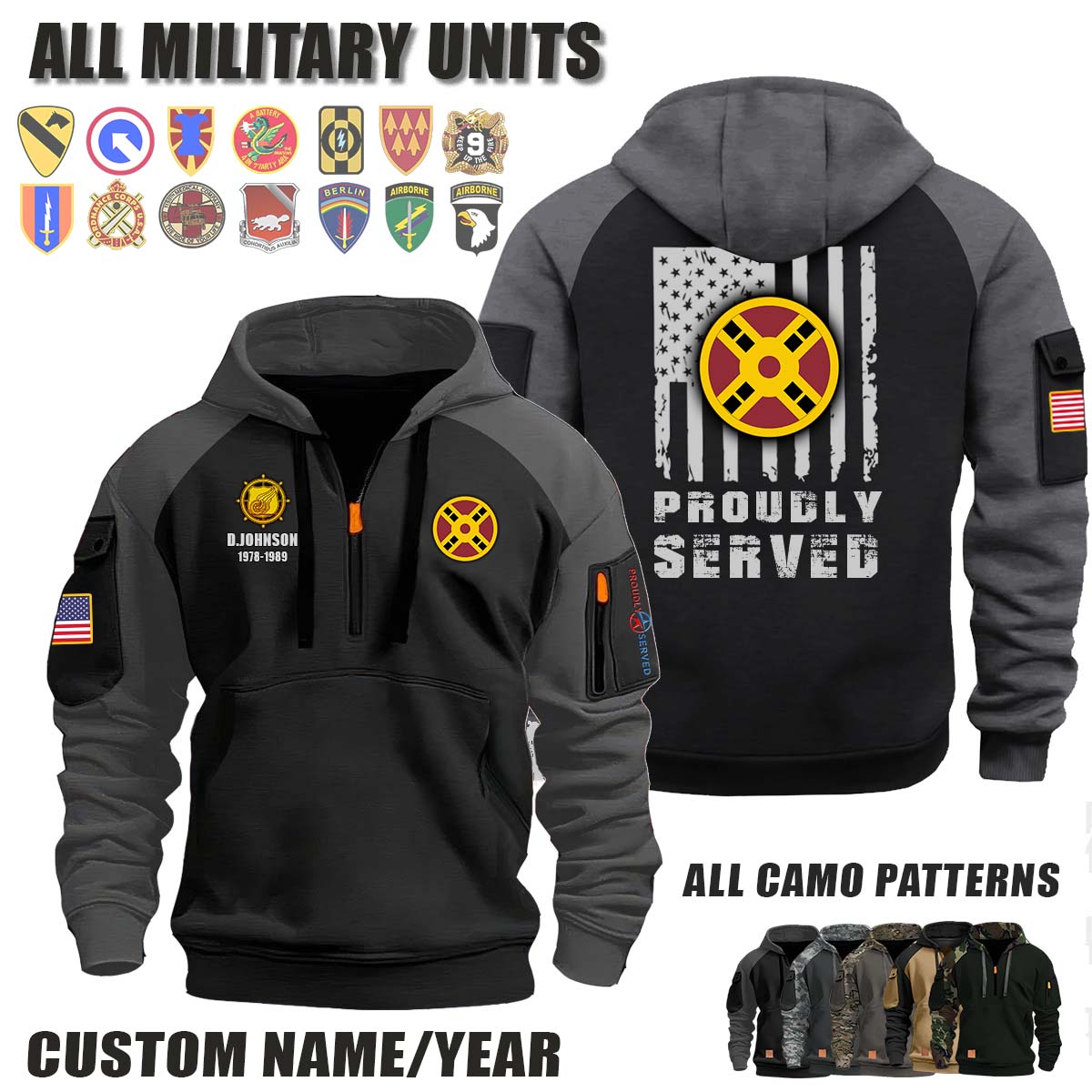 This 425th TRANS BDE 425th Transportation Brigade_Camo Halfzip Hoodie lets you customize your Branch, Unit, Role, Rank, and Years Served — so your service, sacrifice, and pride live on.