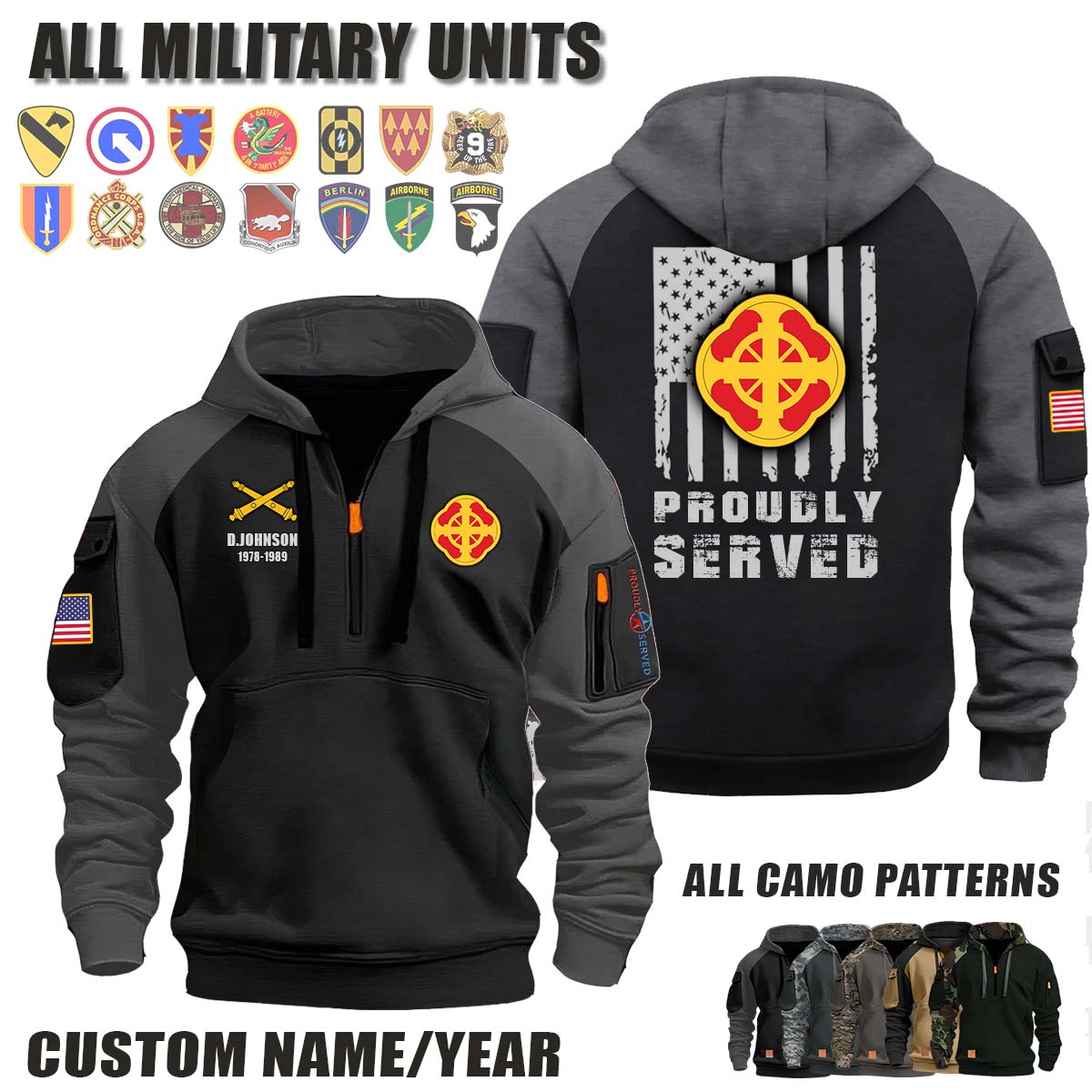 This 428th FA BDE 428th Field Artillery Brigade_Camo Halfzip Hoodie lets you customize your Branch, Unit, Role, Rank, and Years Served — so your service, sacrifice, and pride live on.