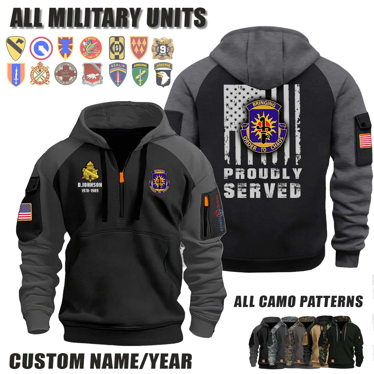 This 432nd CA BN 432nd Civil Affairs Battalion_Camo Halfzip Hoodie lets you customize your Branch, Unit, Role, Rank, and Years Served — so your service, sacrifice, and pride live on.