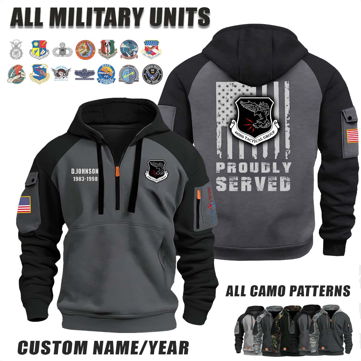 This 4450th TG Tactical Group_Camo Halfzip Hoodie lets you customize your Branch, Unit, Role, Rank, and Years Served — so your service, sacrifice, and pride live on.