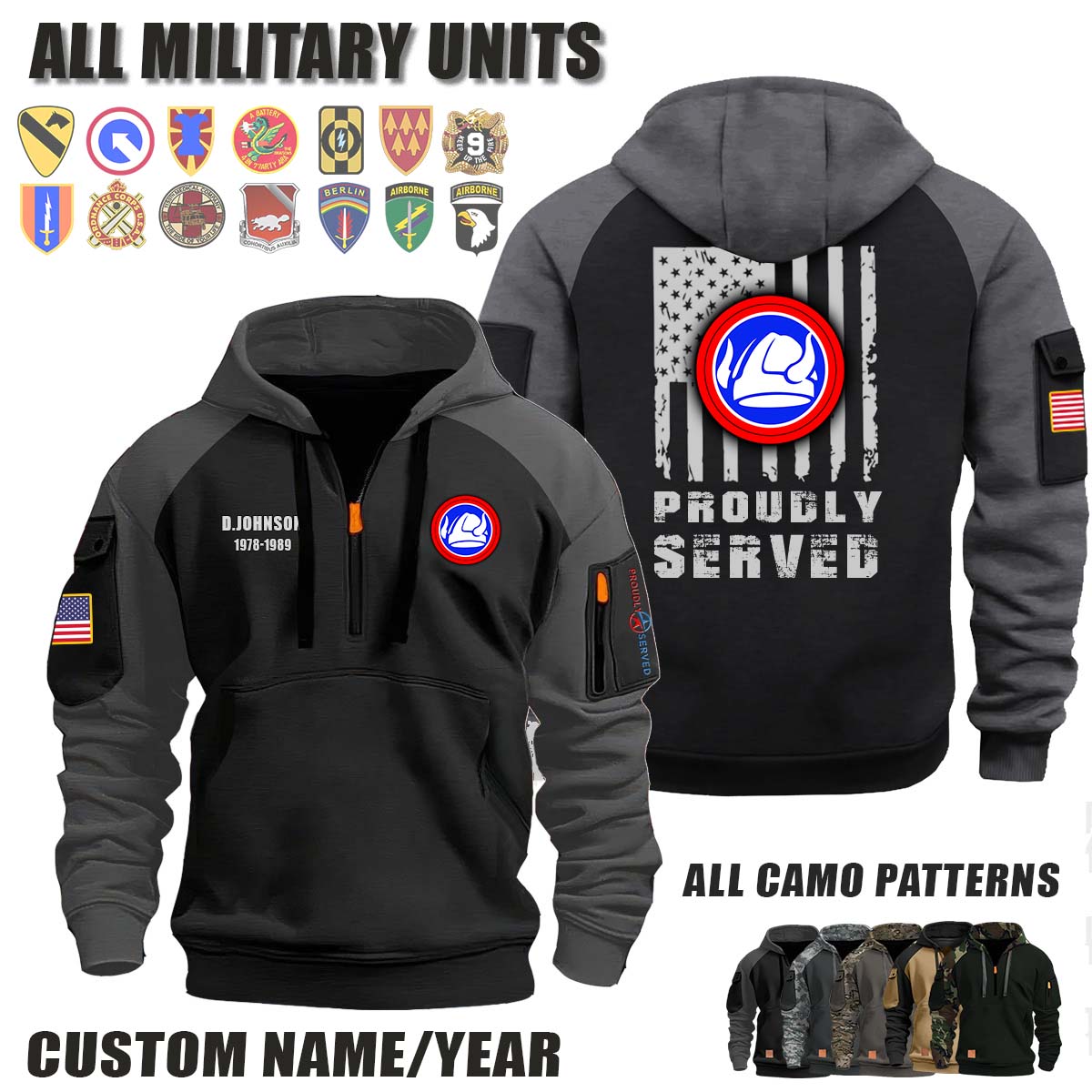 This 47th ID 47th Infantry Division_Camo Halfzip Hoodie lets you customize your Branch, Unit, Role, Rank, and Years Served — so your service, sacrifice, and pride live on.