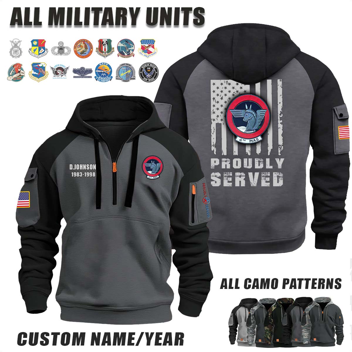 This 4th MAS Military Airlift Squadron_Camo Halfzip Hoodie lets you customize your Branch, Unit, Role, Rank, and Years Served — so your service, sacrifice, and pride live on.