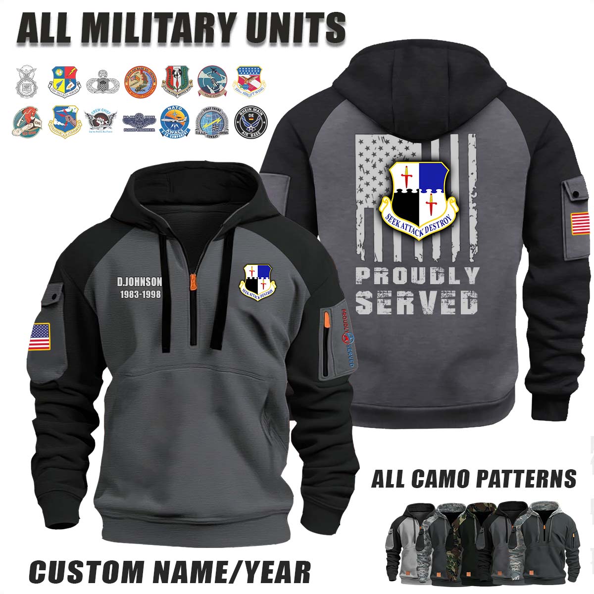 This 52nd FW Fighter Wing_Camo Halfzip Hoodie lets you customize your Branch, Unit, Role, Rank, and Years Served — so your service, sacrifice, and pride live on.