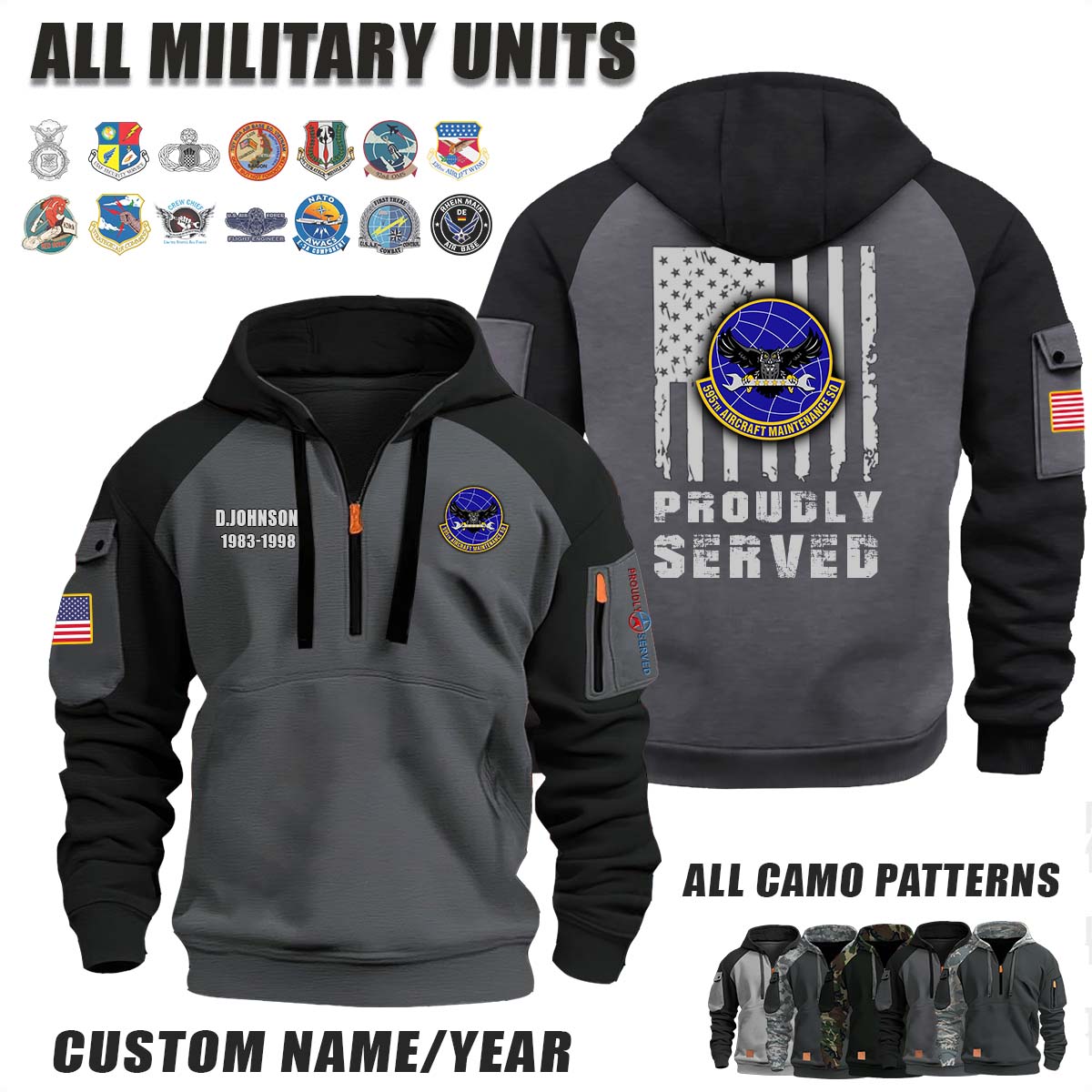 This 595th AMXS Aircraft Maintenance Squadron_Camo Halfzip Hoodie lets you customize your Branch, Unit, Role, Rank, and Years Served — so your service, sacrifice, and pride live on.