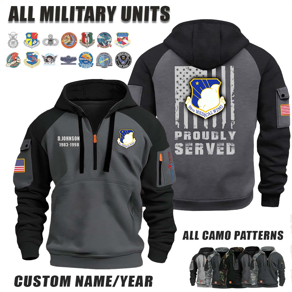 This 59th MDW Medical Wing_Camo Halfzip Hoodie lets you customize your Branch, Unit, Role, Rank, and Years Served — so your service, sacrifice, and pride live on.