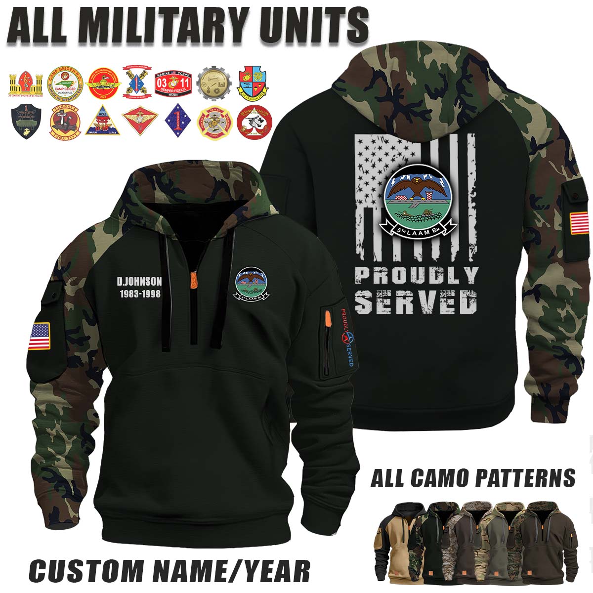 This 5th LAAM Bn 5th Light Antiaircraft Missile Battalion_Camo Halfzip Hoodie lets you customize your Branch, Unit, Role, Rank, and Years Served — so your service, sacrifice, and pride live on.