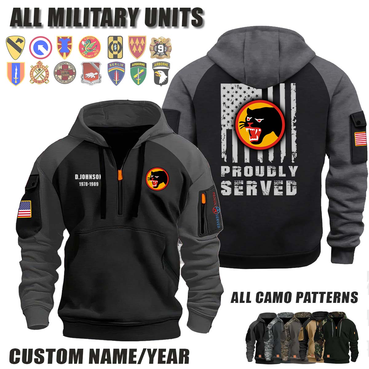 This 66th ID 66th Infantry Division_Camo Halfzip Hoodie lets you customize your Branch, Unit, Role, Rank, and Years Served — so your service, sacrifice, and pride live on.