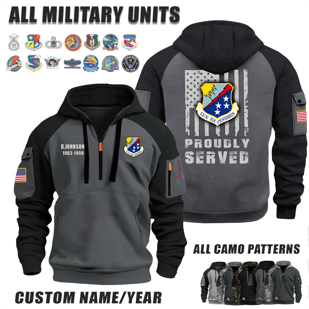 This 67th CW Cyberspace Wing_Camo Halfzip Hoodie lets you customize your Branch, Unit, Role, Rank, and Years Served — so your service, sacrifice, and pride live on.