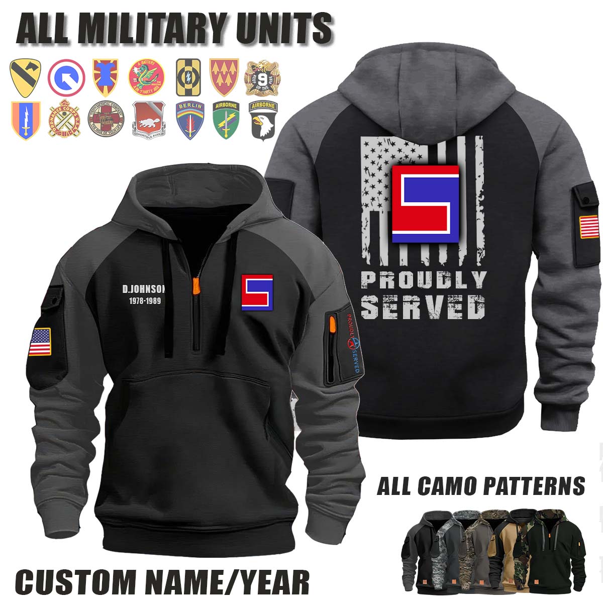 This 69th ID 69th Infantry Division_Camo Halfzip Hoodie lets you customize your Branch, Unit, Role, Rank, and Years Served — so your service, sacrifice, and pride live on.