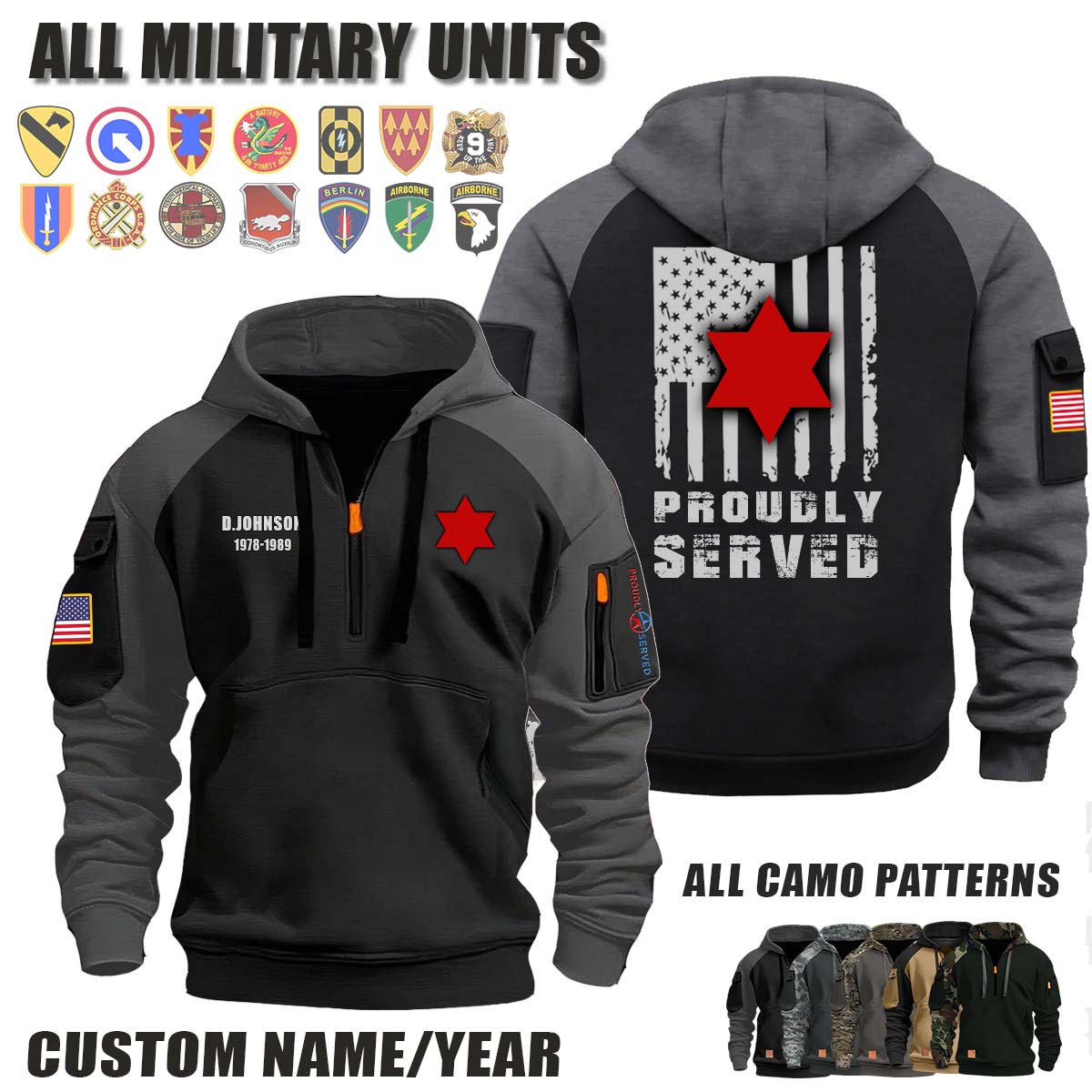 This 6th ID 6th Infantry Division_Camo Halfzip Hoodie lets you customize your Branch, Unit, Role, Rank, and Years Served — so your service, sacrifice, and pride live on.