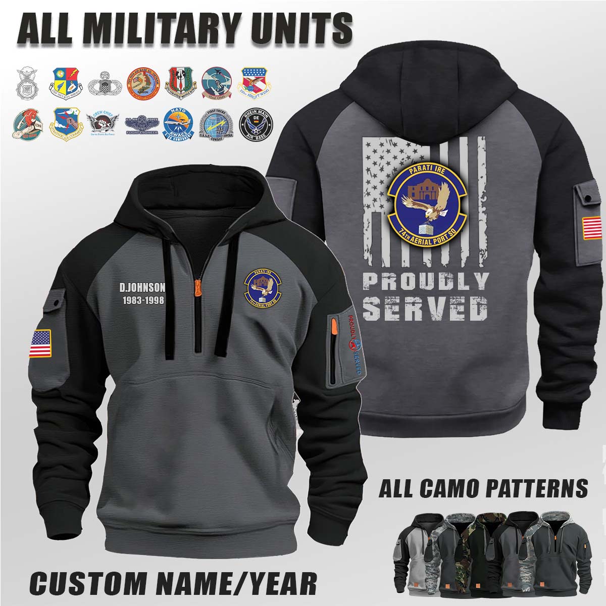 This 74th APS Aerial Port Squadron_Camo Halfzip Hoodie lets you customize your Branch, Unit, Role, Rank, and Years Served — so your service, sacrifice, and pride live on.