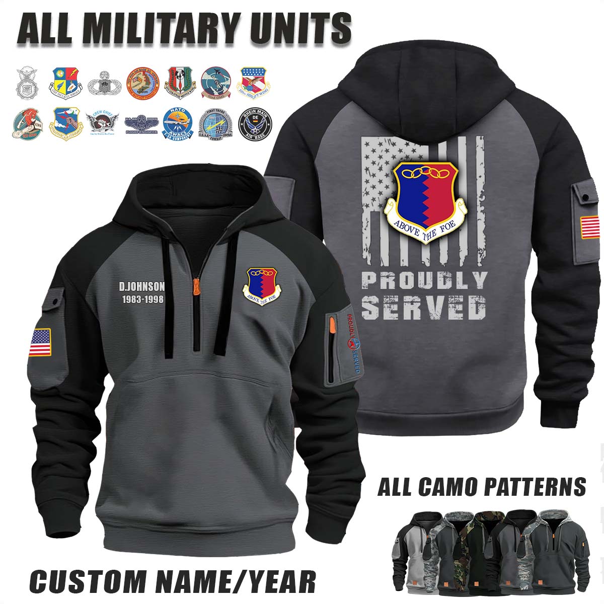 This 78th ABW Air Base Wing_Camo Halfzip Hoodie lets you customize your Branch, Unit, Role, Rank, and Years Served — so your service, sacrifice, and pride live on.