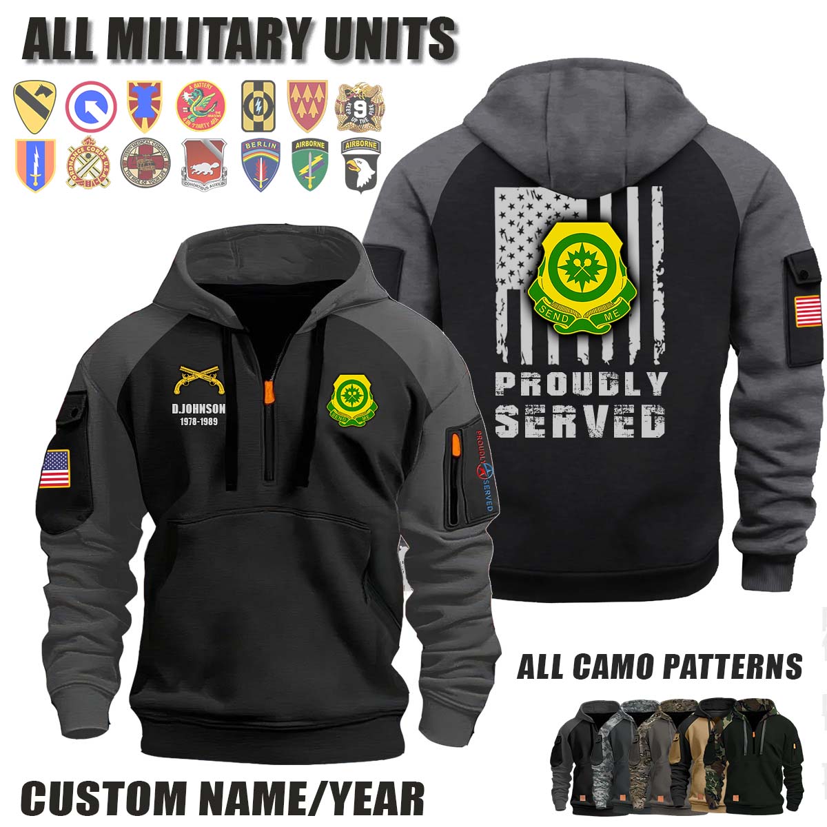 This 795th MP BN 795th Military Police Battalion_Camo Halfzip Hoodie lets you customize your Branch, Unit, Role, Rank, and Years Served — so your service, sacrifice, and pride live on.