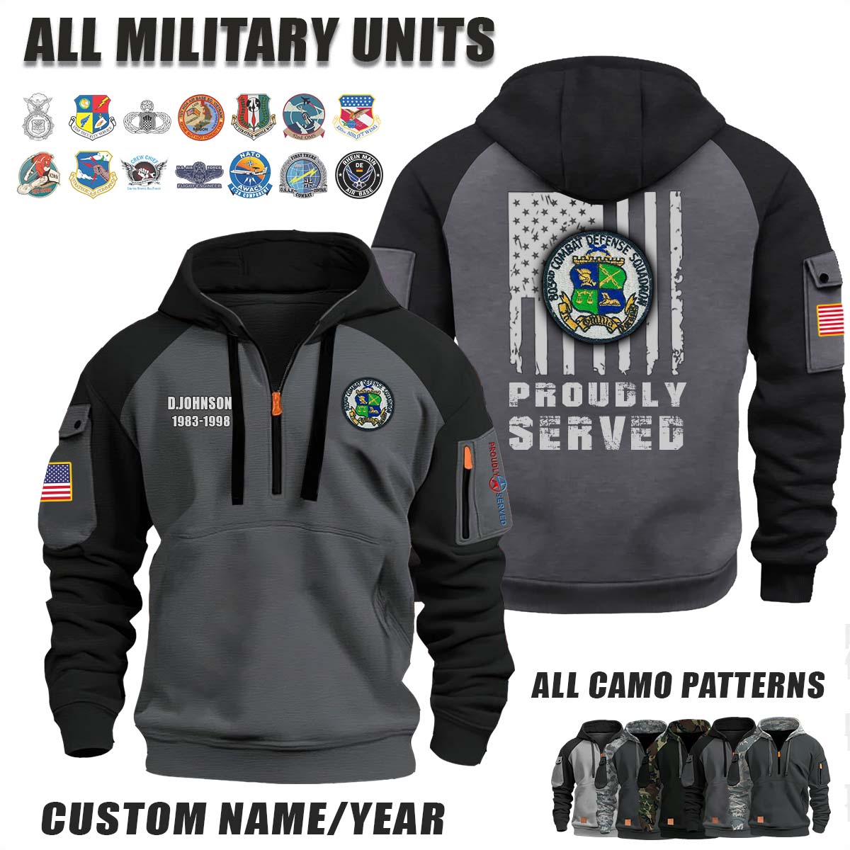 This 803rd CDS 803rd Combat Defense Squadron_Camo Halfzip Hoodie lets you customize your Branch, Unit, Role, Rank, and Years Served — so your service, sacrifice, and pride live on.