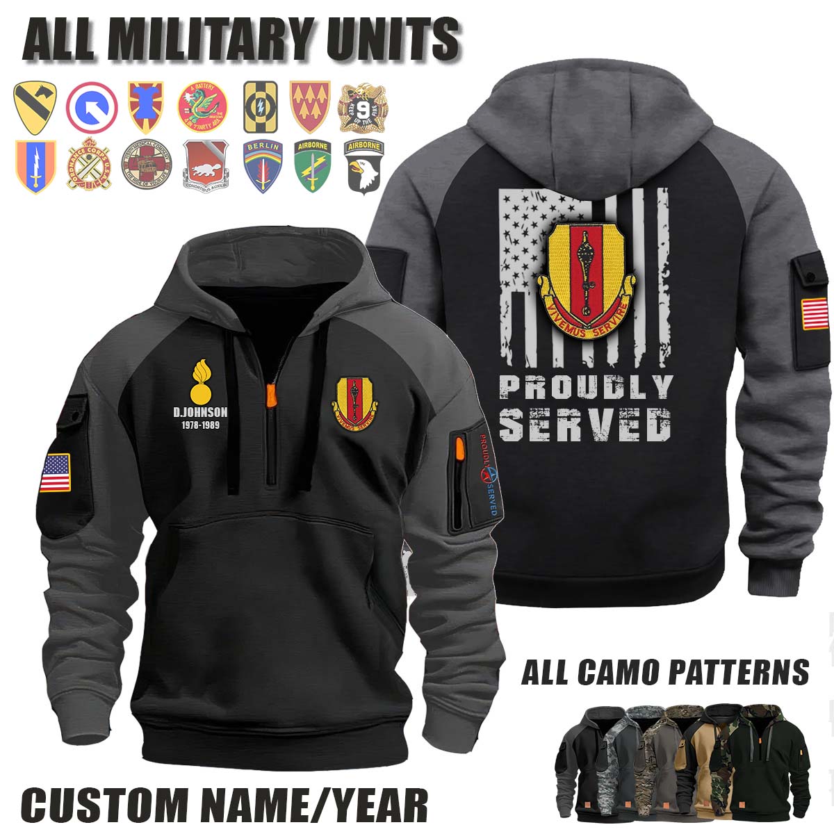 This 808th ORD BN 808th Ordnance Battalion_Camo Halfzip Hoodie lets you customize your Branch, Unit, Role, Rank, and Years Served — so your service, sacrifice, and pride live on.