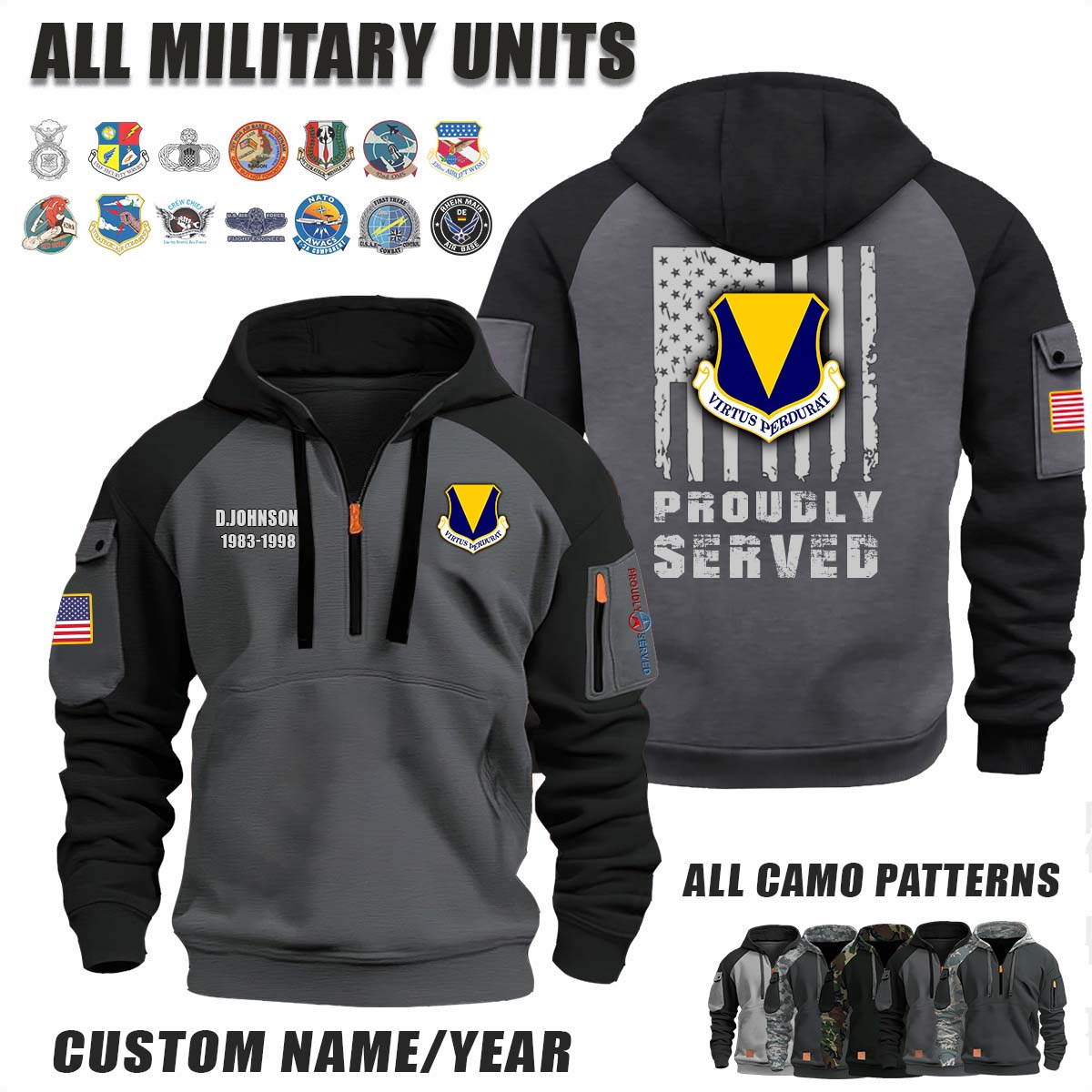 This 86th AW Airlift Wing_Camo Halfzip Hoodie lets you customize your Branch, Unit, Role, Rank, and Years Served — so your service, sacrifice, and pride live on.