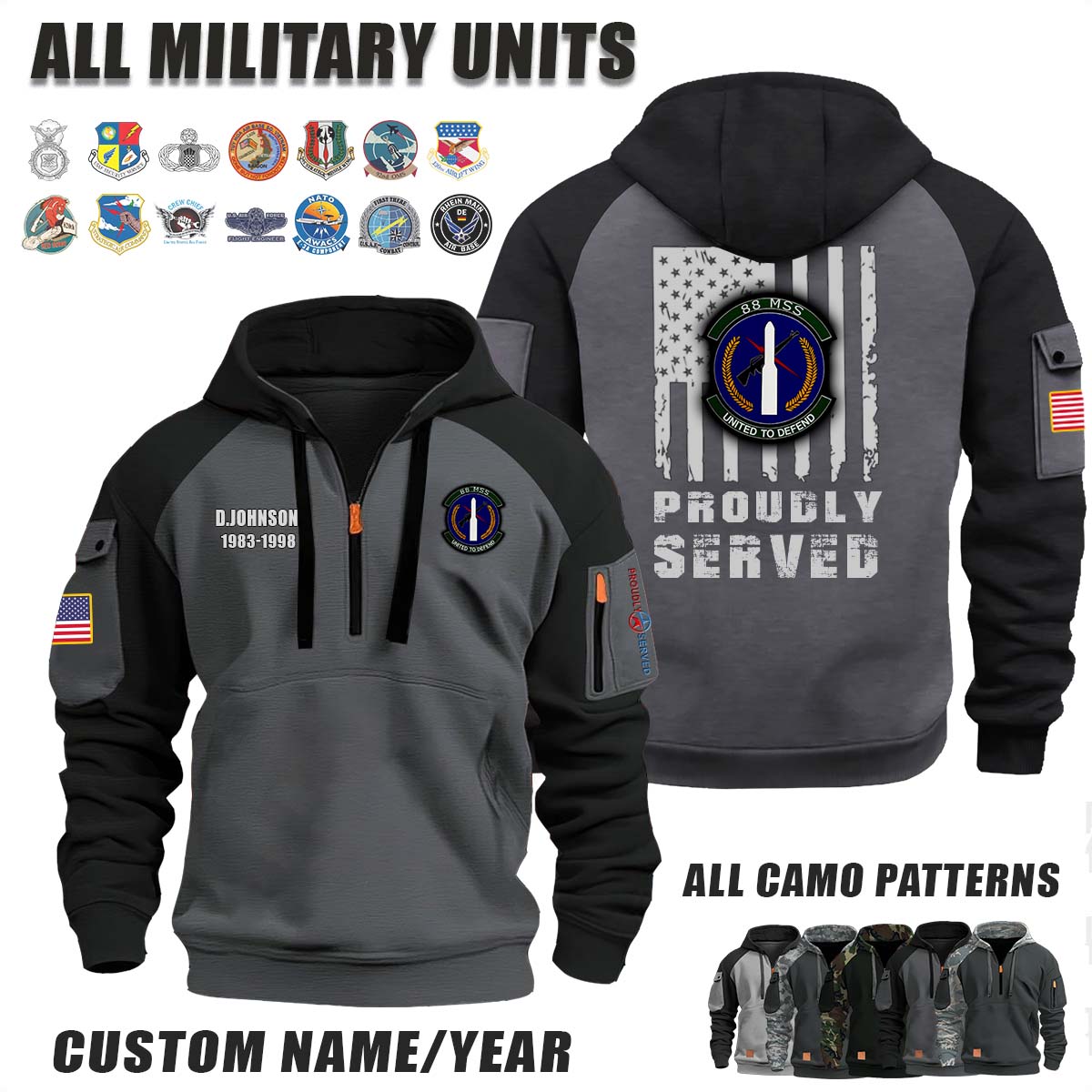 This 88th MSS Missile Security Squadron_Camo Halfzip Hoodie lets you customize your Branch, Unit, Role, Rank, and Years Served — so your service, sacrifice, and pride live on.