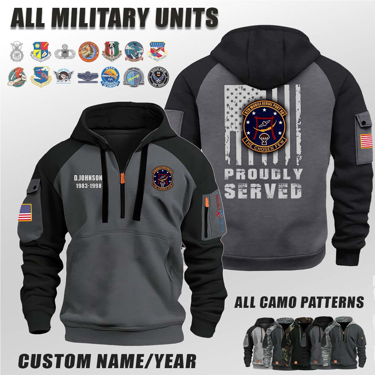 This 8th MAPS Mobile Aerial Port Squadron_Camo Halfzip Hoodie lets you customize your Branch, Unit, Role, Rank, and Years Served — so your service, sacrifice, and pride live on.