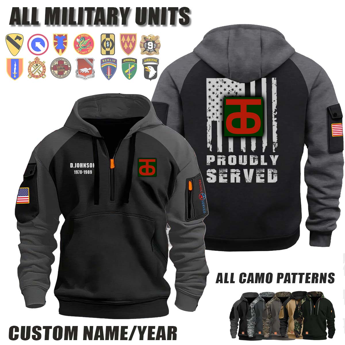 This 90th ID 90th Infantry Division_Camo Halfzip Hoodie lets you customize your Branch, Unit, Role, Rank, and Years Served — so your service, sacrifice, and pride live on.