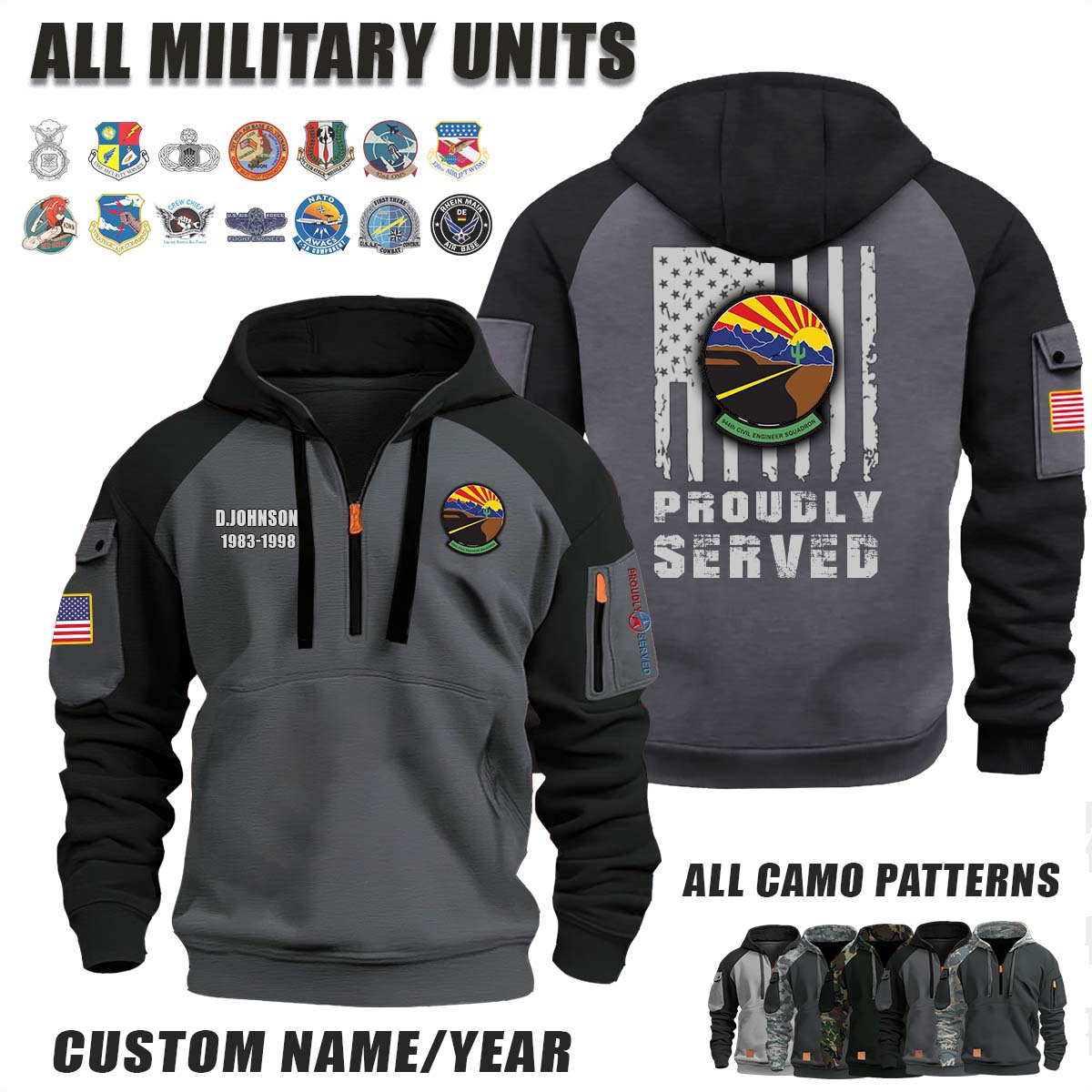 This 944th CES Civil Engineer Squadron_Camo Halfzip Hoodie lets you customize your Branch, Unit, Role, Rank, and Years Served — so your service, sacrifice, and pride live on.