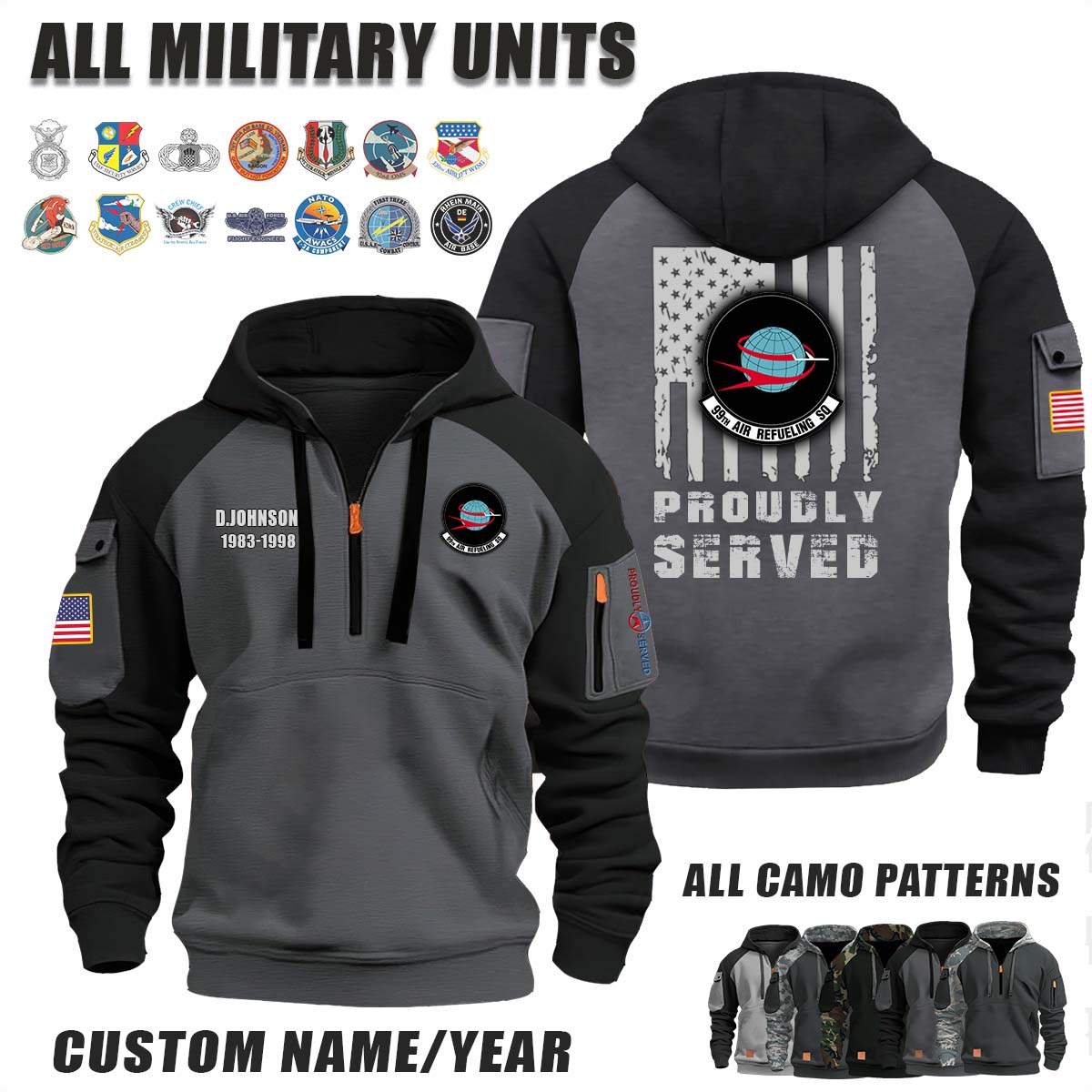 This 99th ARS Air Refueling Squadron_Camo Halfzip Hoodie lets you customize your Branch, Unit, Role, Rank, and Years Served — so your service, sacrifice, and pride live on.