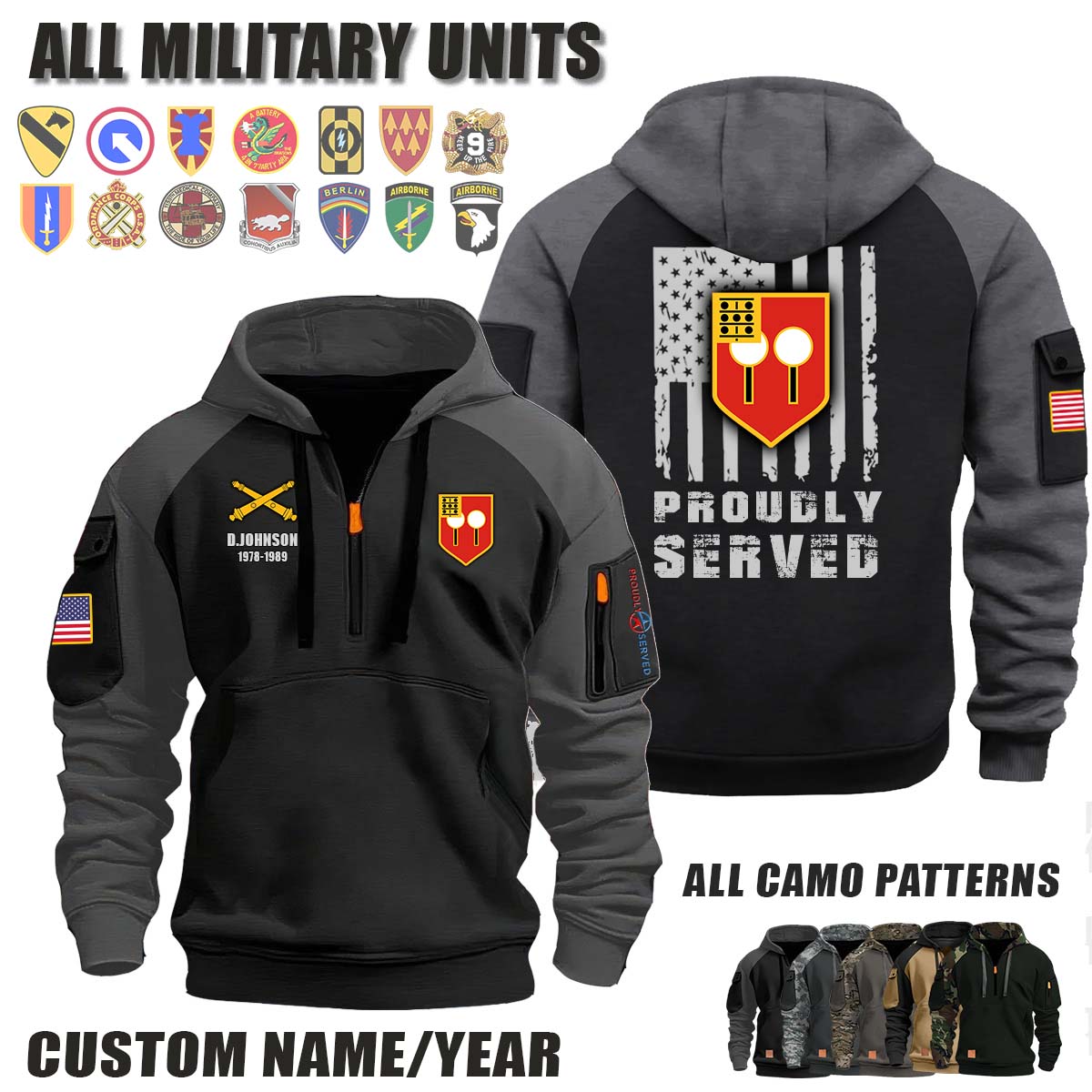 This 9th FA 9th Field Artillery Regiment_Camo Halfzip Hoodie lets you customize your Branch, Unit, Role, Rank, and Years Served — so your service, sacrifice, and pride live on.