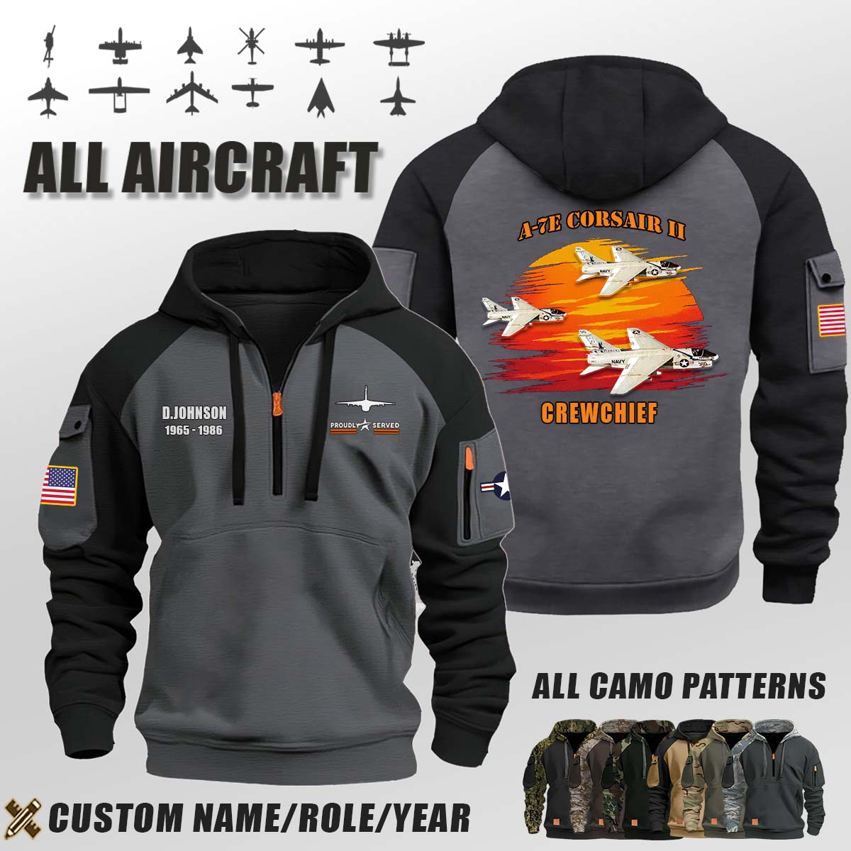 This A-7E Corsair II A7E_Sunset Camo Halfzip Hoodie honors every hero who has ever touched the skies in service to our nation. Whether you’re an active-duty pilot leading today’s missions, a proud veteran of past air campaigns, or a family member supporting those who fly—this hoodie carries your aviation spirit with pride and strength.