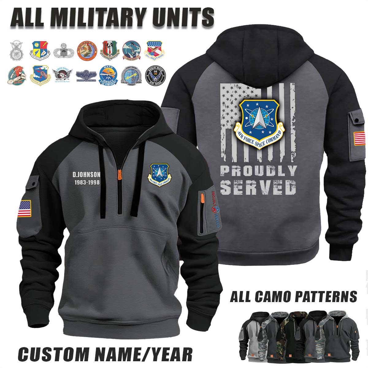This AFSC Air Force Space Command_Camo Halfzip Hoodie lets you customize your Branch, Unit, Role, Rank, and Years Served — so your service, sacrifice, and pride live on.