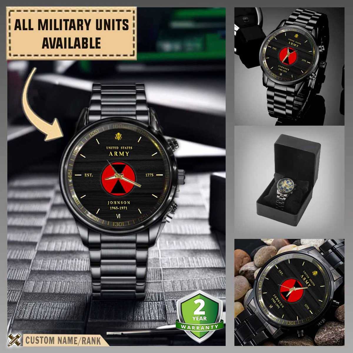 Celebrating your service with our C Company 1-32 INFANTRY, 7th ID _Military Black Wrist Watch
