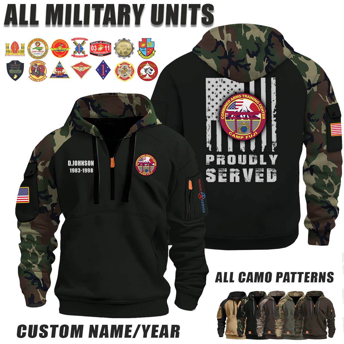 This Camp Fuji_Camo Halfzip Hoodie lets you customize your Branch, Unit, Role, Rank, and Years Served — so your service, sacrifice, and pride live on.