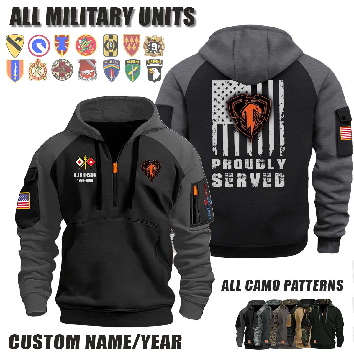 This Charlie Company 304th ESB-E_Camo Halfzip Hoodie lets you customize your Branch, Unit, Role, Rank, and Years Served — so your service, sacrifice, and pride live on.