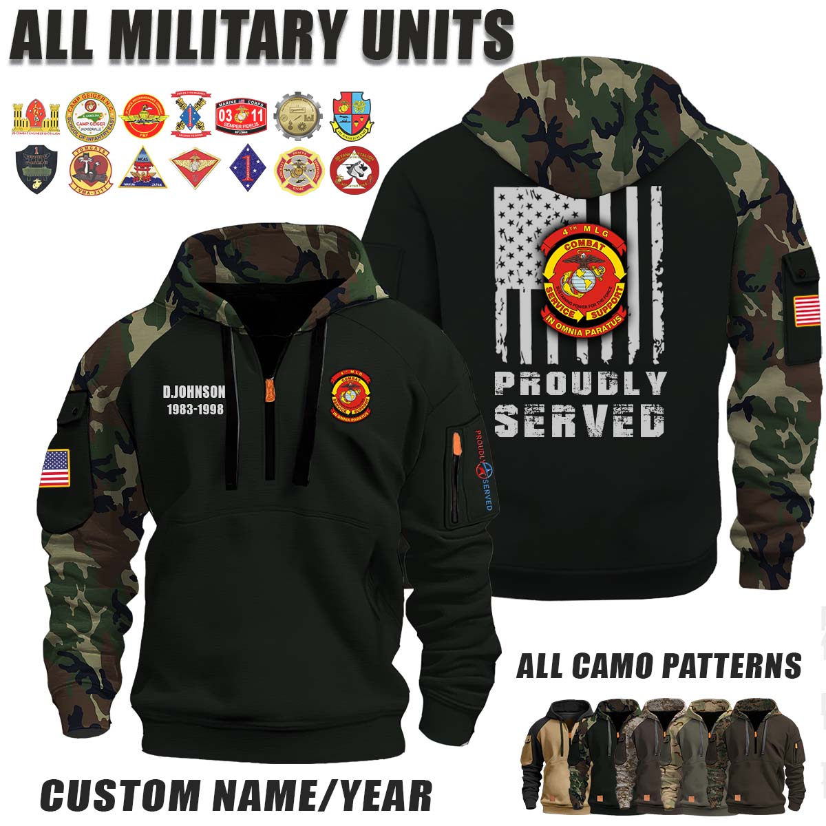 This CLB-46 Combat Logistics Battalion 46_Camo Halfzip Hoodie lets you customize your Branch, Unit, Role, Rank, and Years Served — so your service, sacrifice, and pride live on.