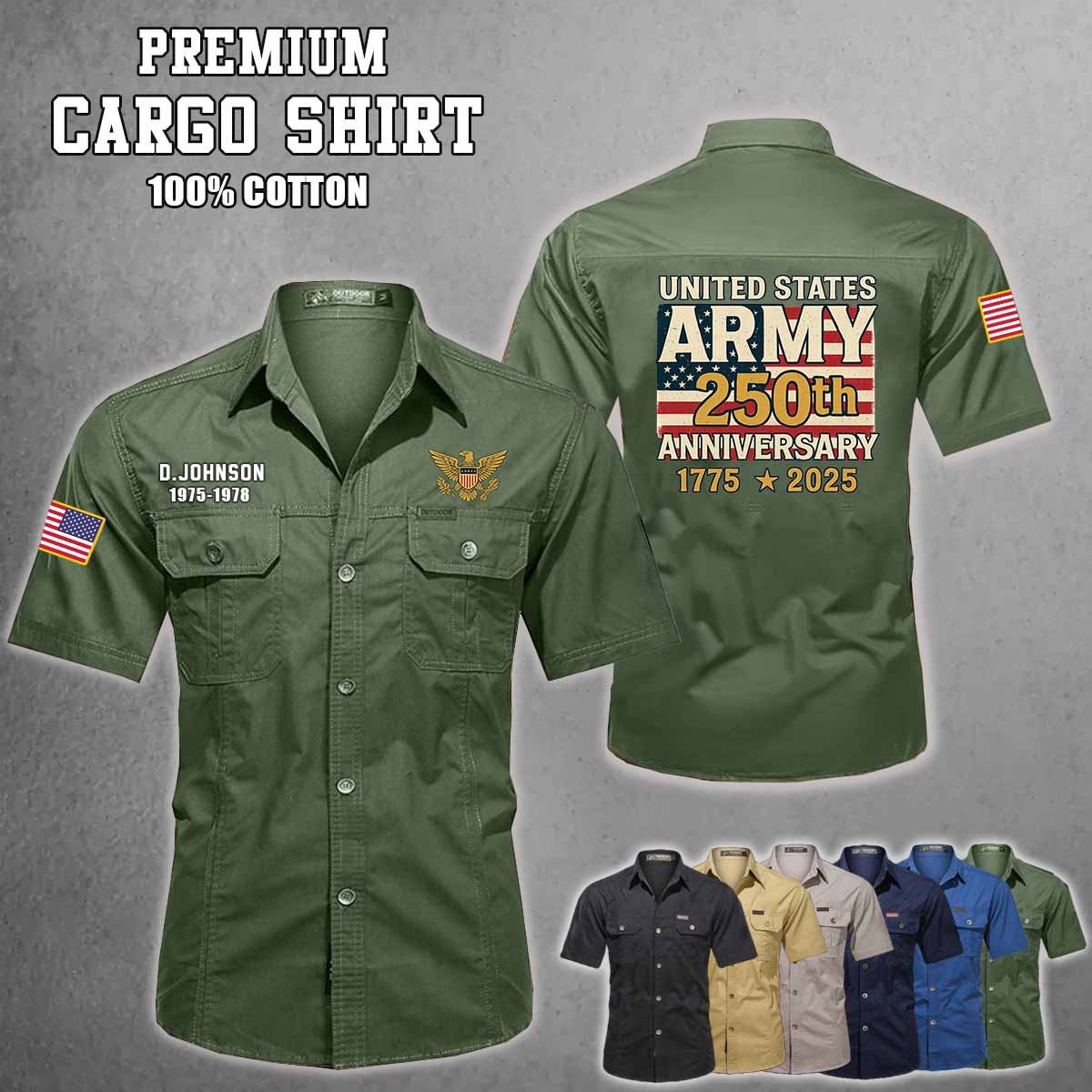 Celebrating your service with our Custom 250th US Army Anniversary Ver01 Cotton Cargo Shirt