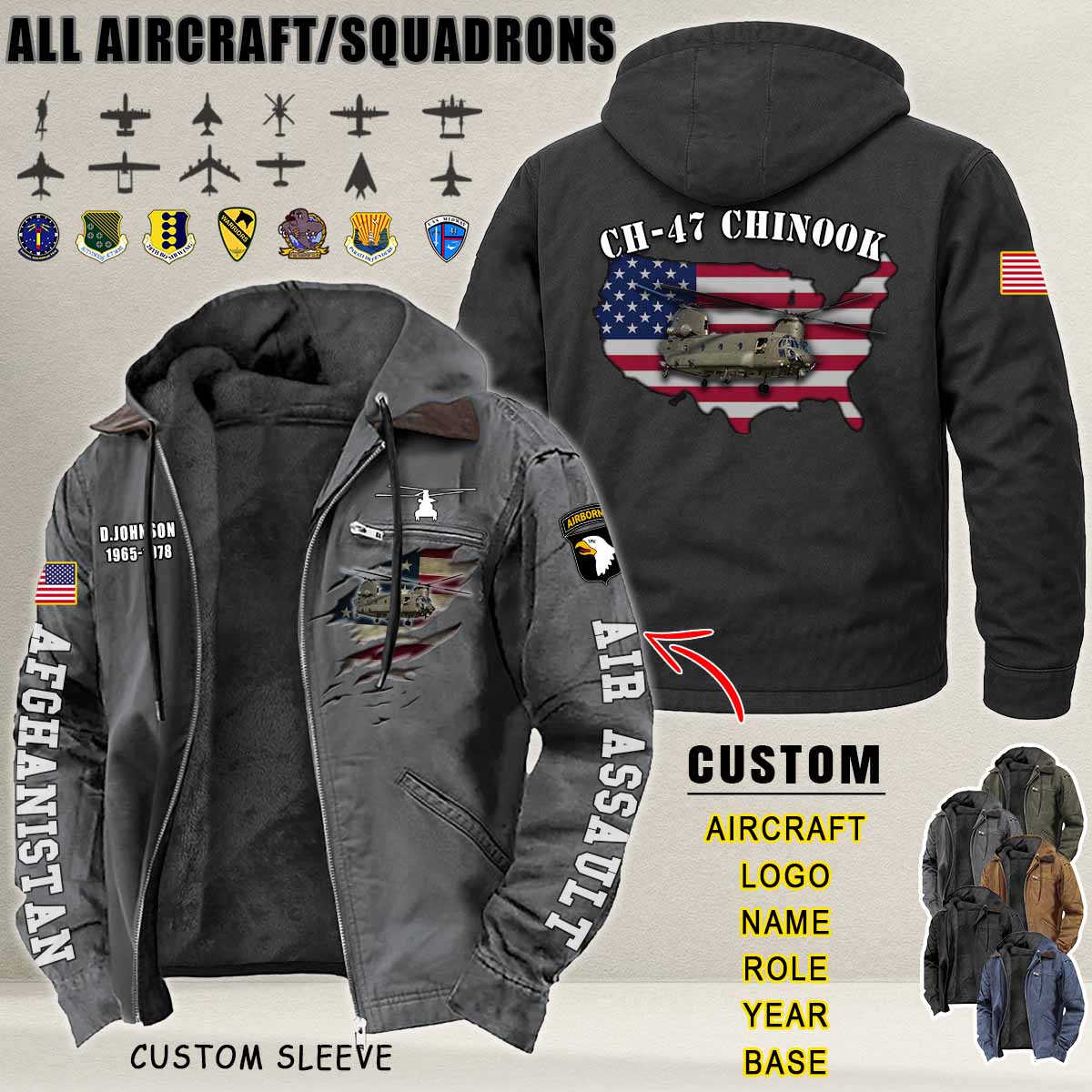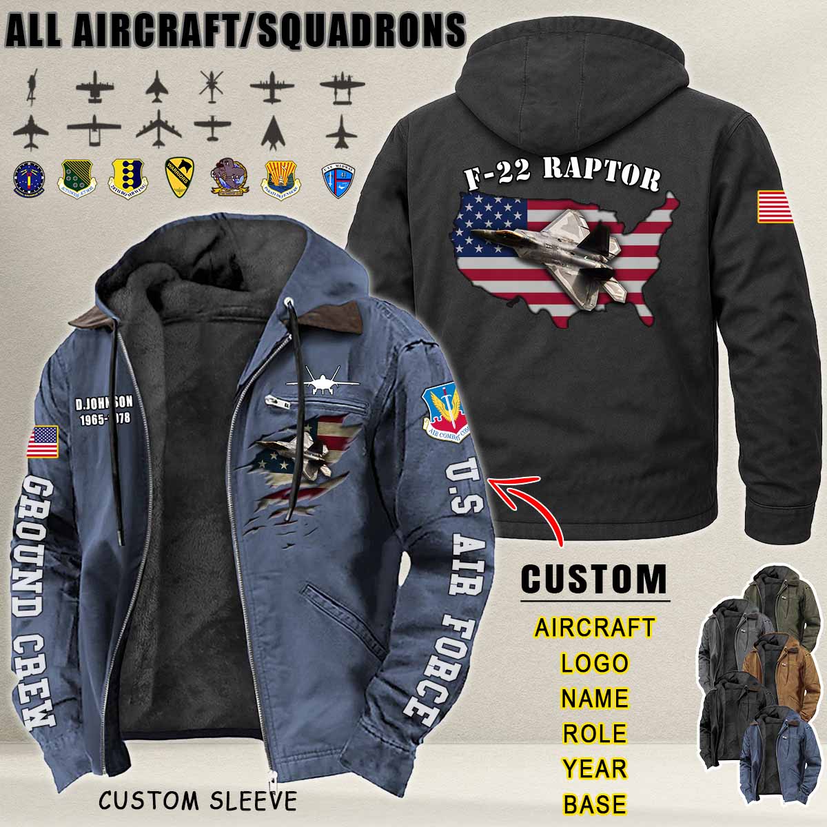 Imagine your aircraft — F-16, C-130, B-52, or AH-64 — boldly printed across a premium hoodie, set against a stunning vintage aviation backdrop.