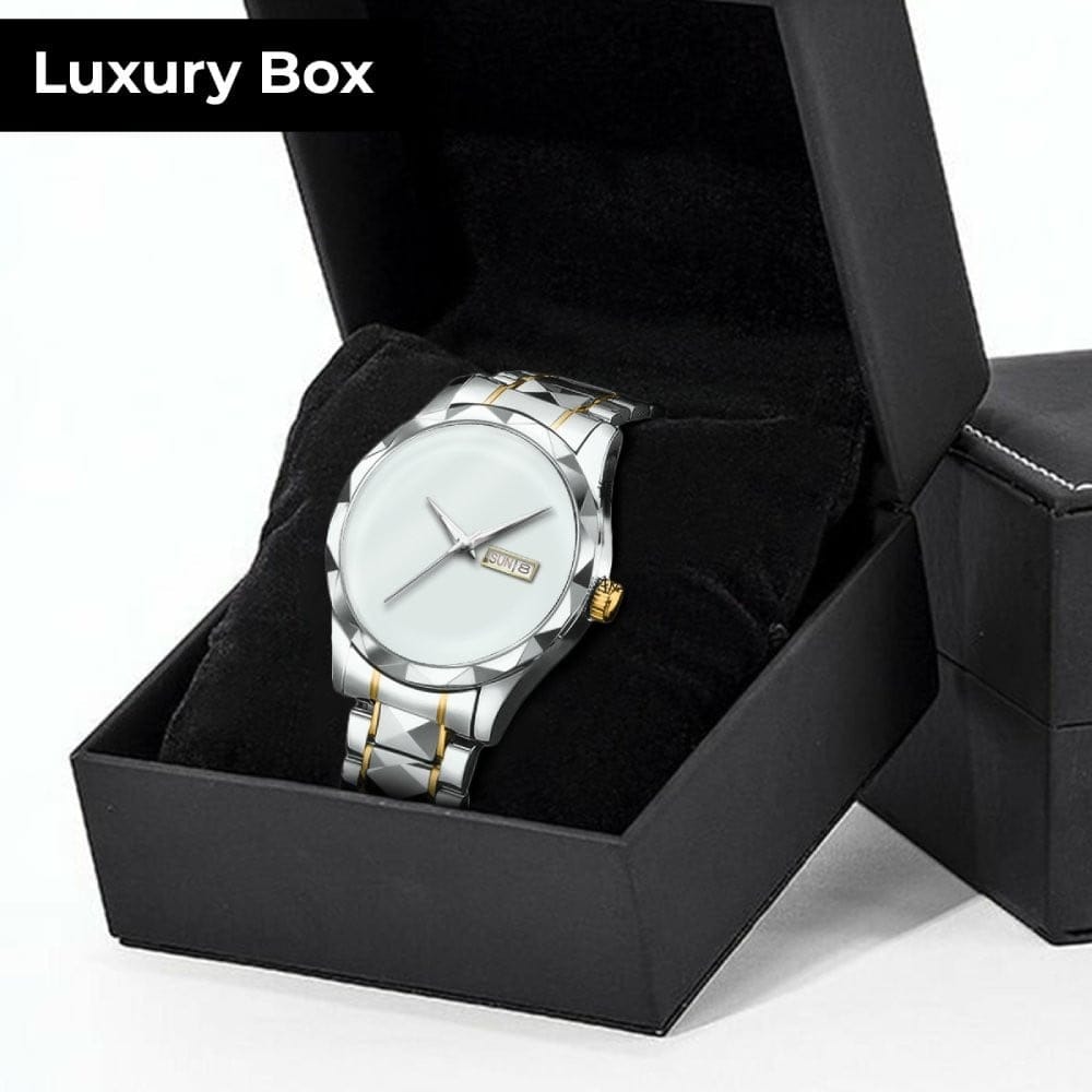 Crafted from high-grade stainless steel, this watch is as tough as it is elegant. The scratch-resistant case and solid metal strap ensure long-term durability, while the polished finish gives it a sleek, premium feel. Comfortable for daily wear yet bold enough for special occasions.