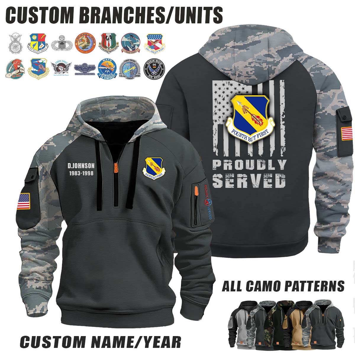 Custom US Air Force_Proudly Served Camo Halfzip Hoodie