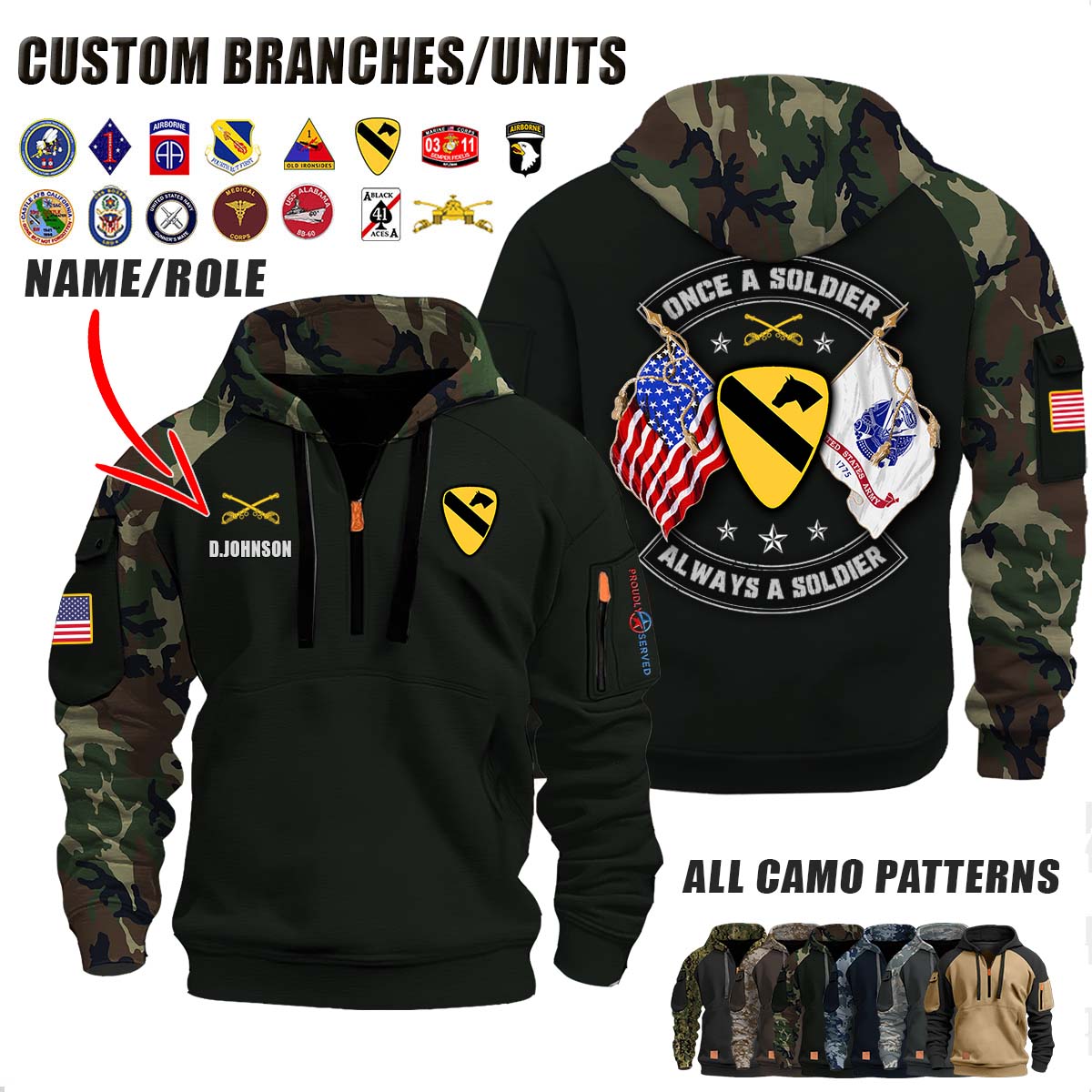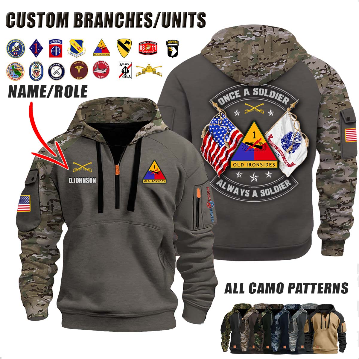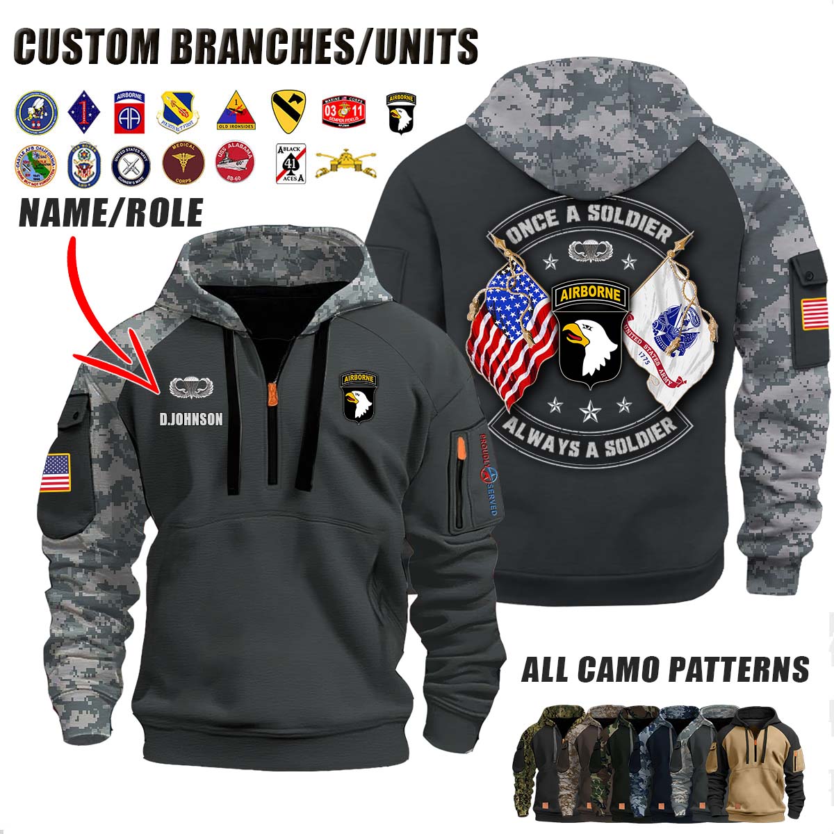 Custom US Army_N1 Once A Soldier Double Flag Halfzip Hoodie