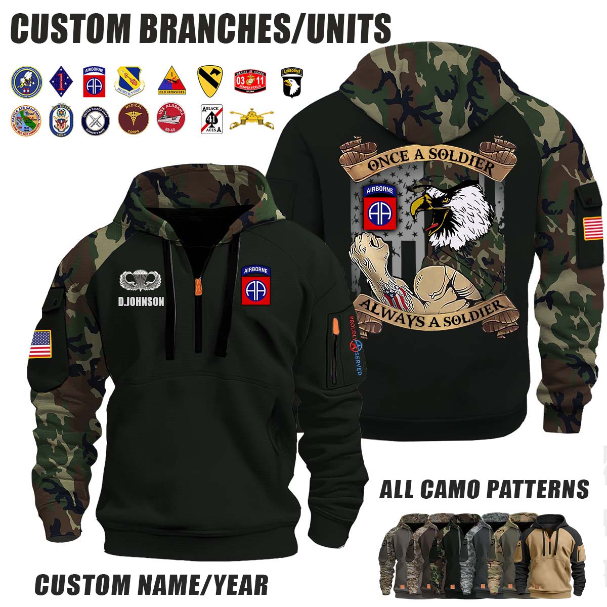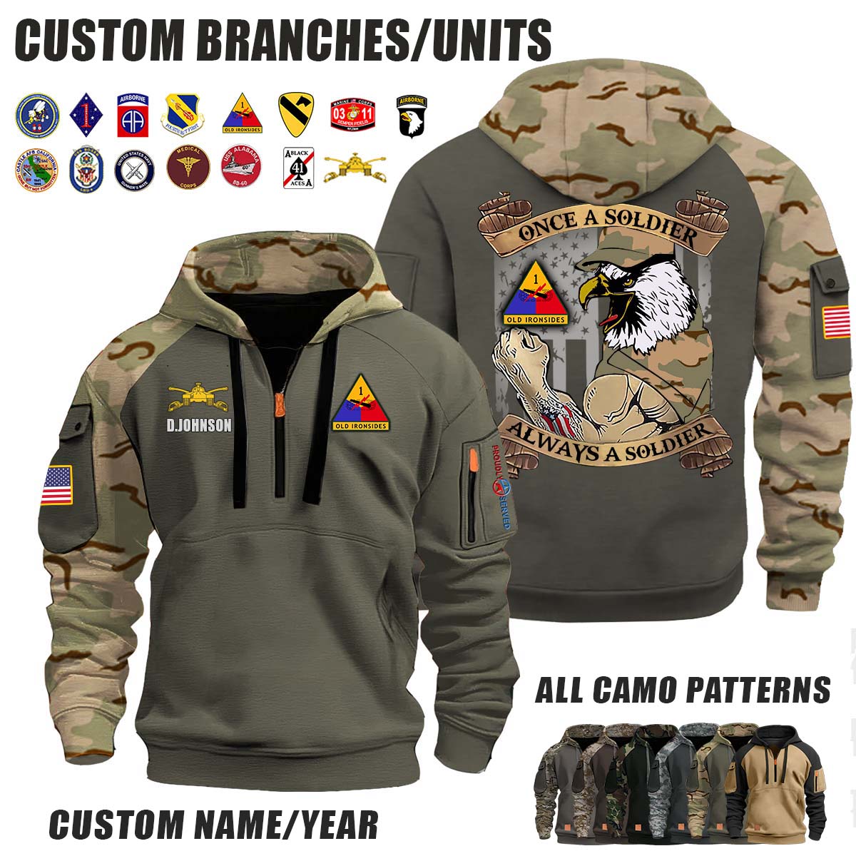 Custom US Army_Vet Eagle Once a Soldier Camo Halfzip Hoodie