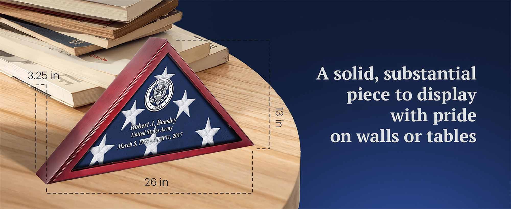 Create a lasting legacy that speaks of honor, courage, and remembrance. Our flag cases are designed to preserve and display the symbol of your loved one’s service, sacrifice, and patriotism. They are perfect for veterans, first responders, or anyone who cherishes the Stars and Stripes.