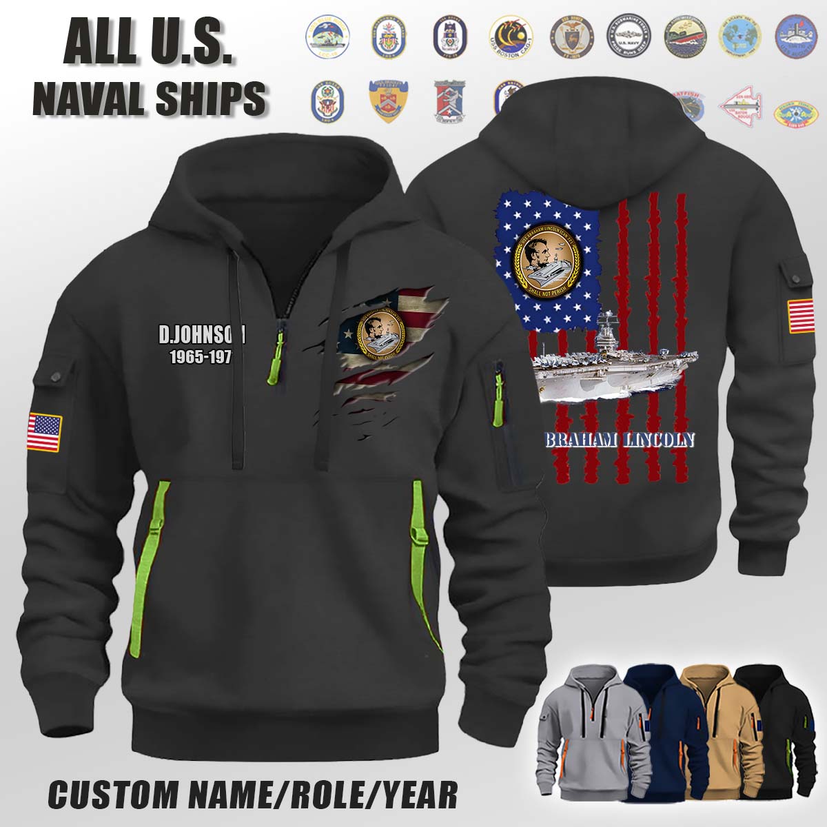 Custom US Naval Ships_Quarter Zip Hoodie Custom US Naval Ships_Quarter Zip Hoodie