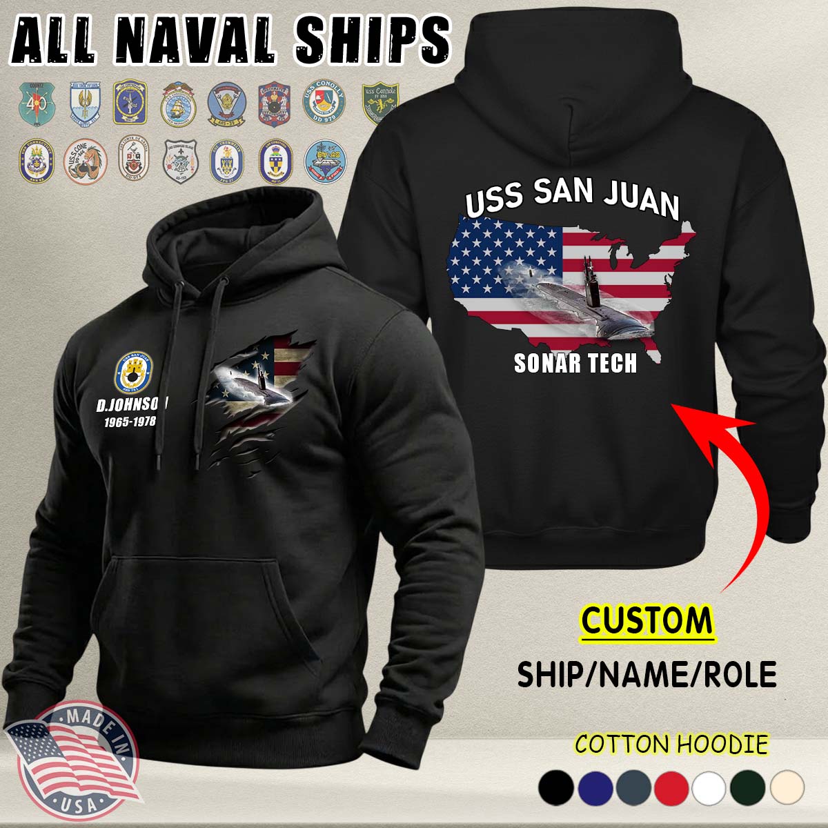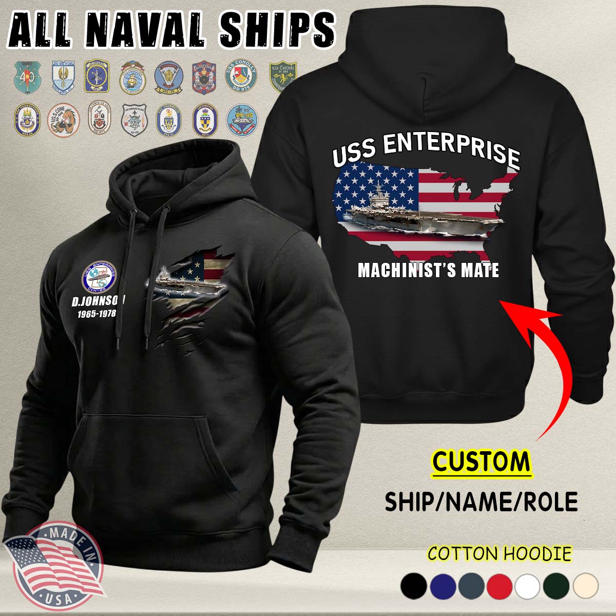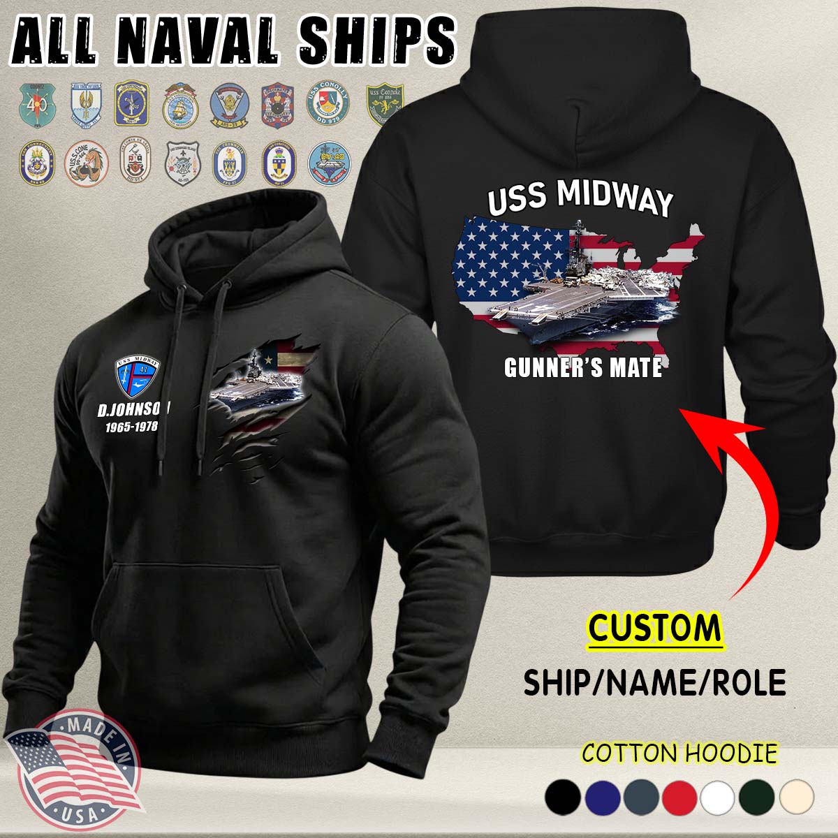 This Custom US Naval Ships Cotton Hoodie honors EVERY hero who has served at sea.