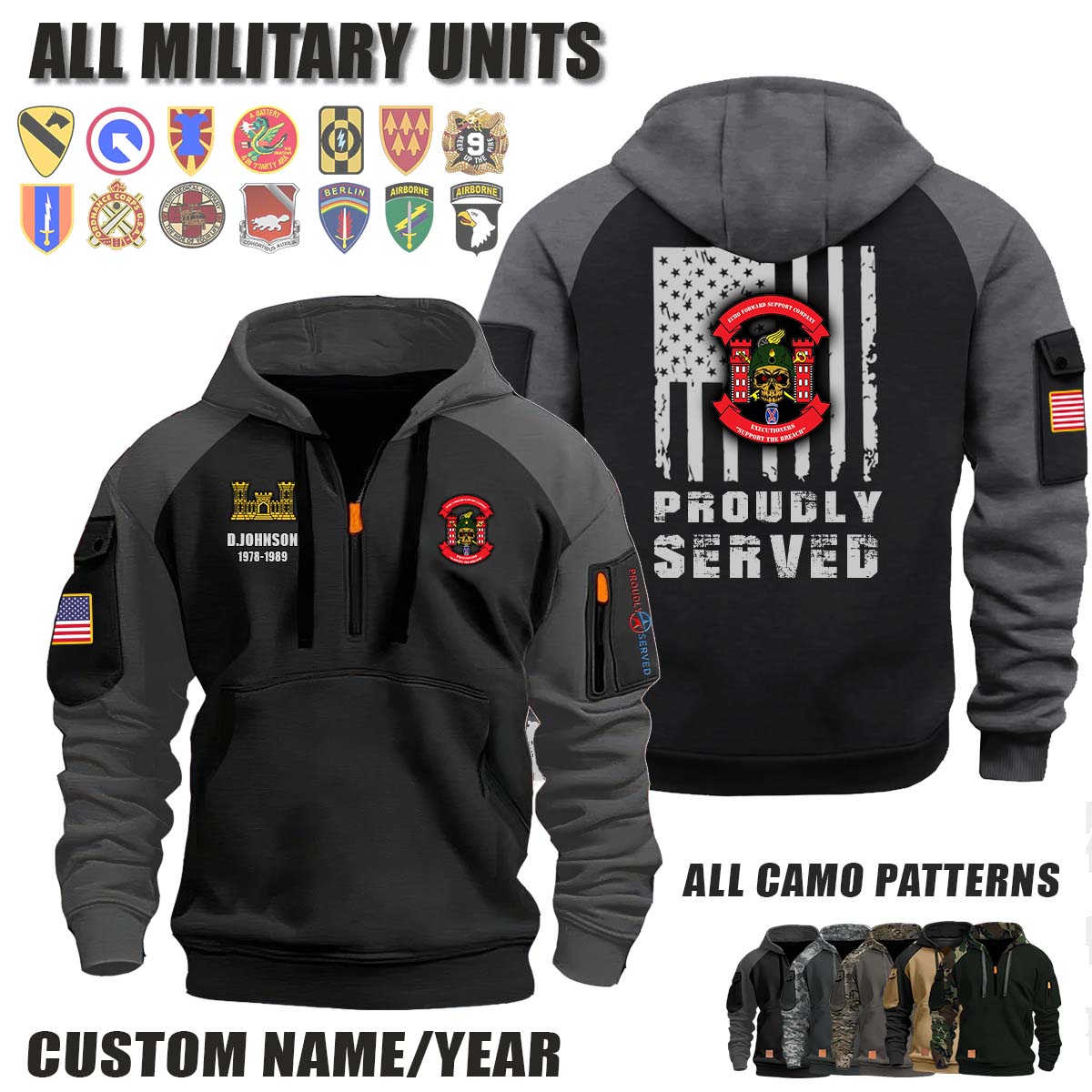 This Executioners, Echo Co 41st BEB Brigade Engineer Battalion_Camo Halfzip Hoodie lets you customize your Branch, Unit, Role, Rank, and Years Served — so your service, sacrifice, and pride live on.