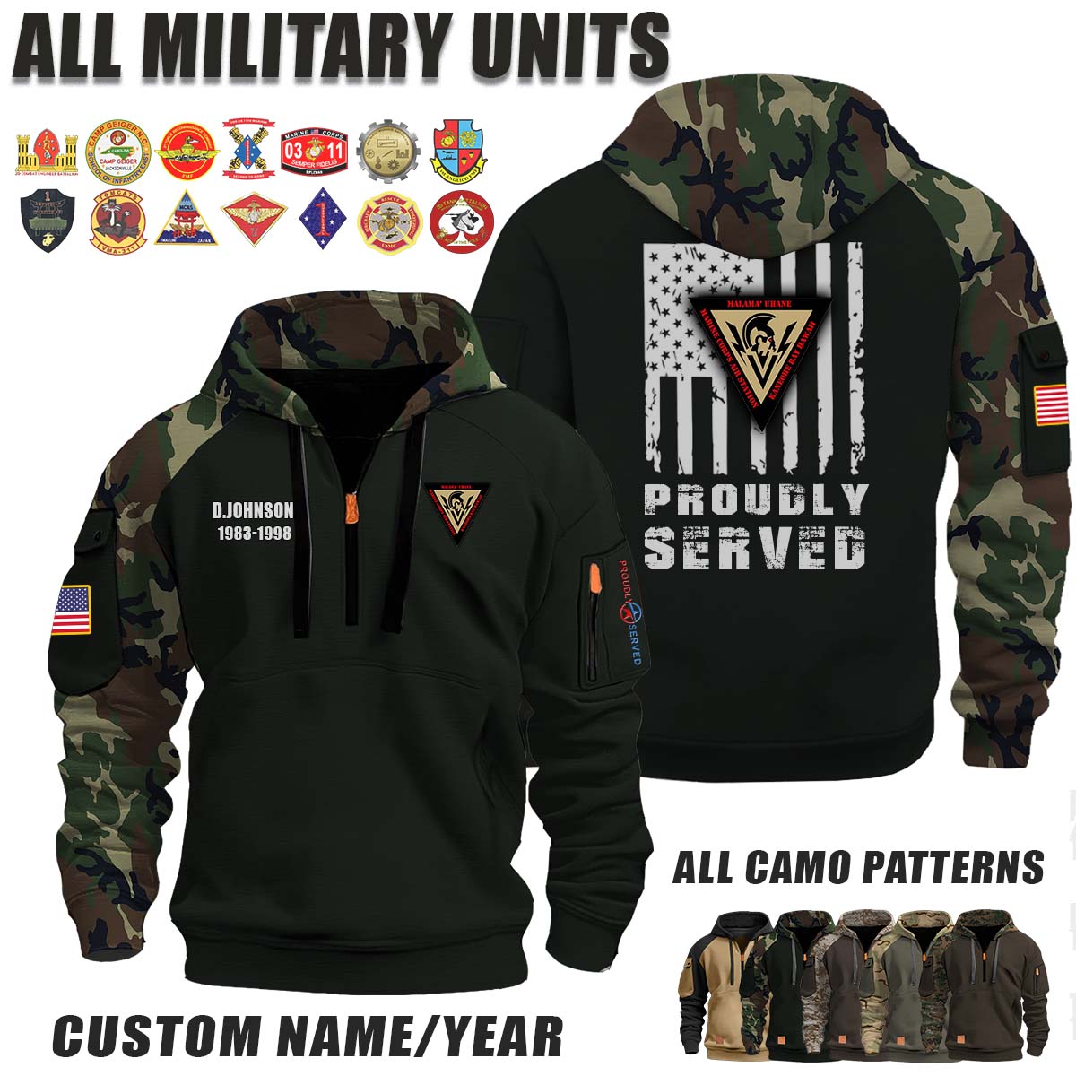 This MCAS Kaneohe Bay Marine Corps Air Station Kaneohe Bay_Camo Halfzip Hoodie lets you customize your Branch, Unit, Role, Rank, and Years Served — so your service, sacrifice, and pride live on.