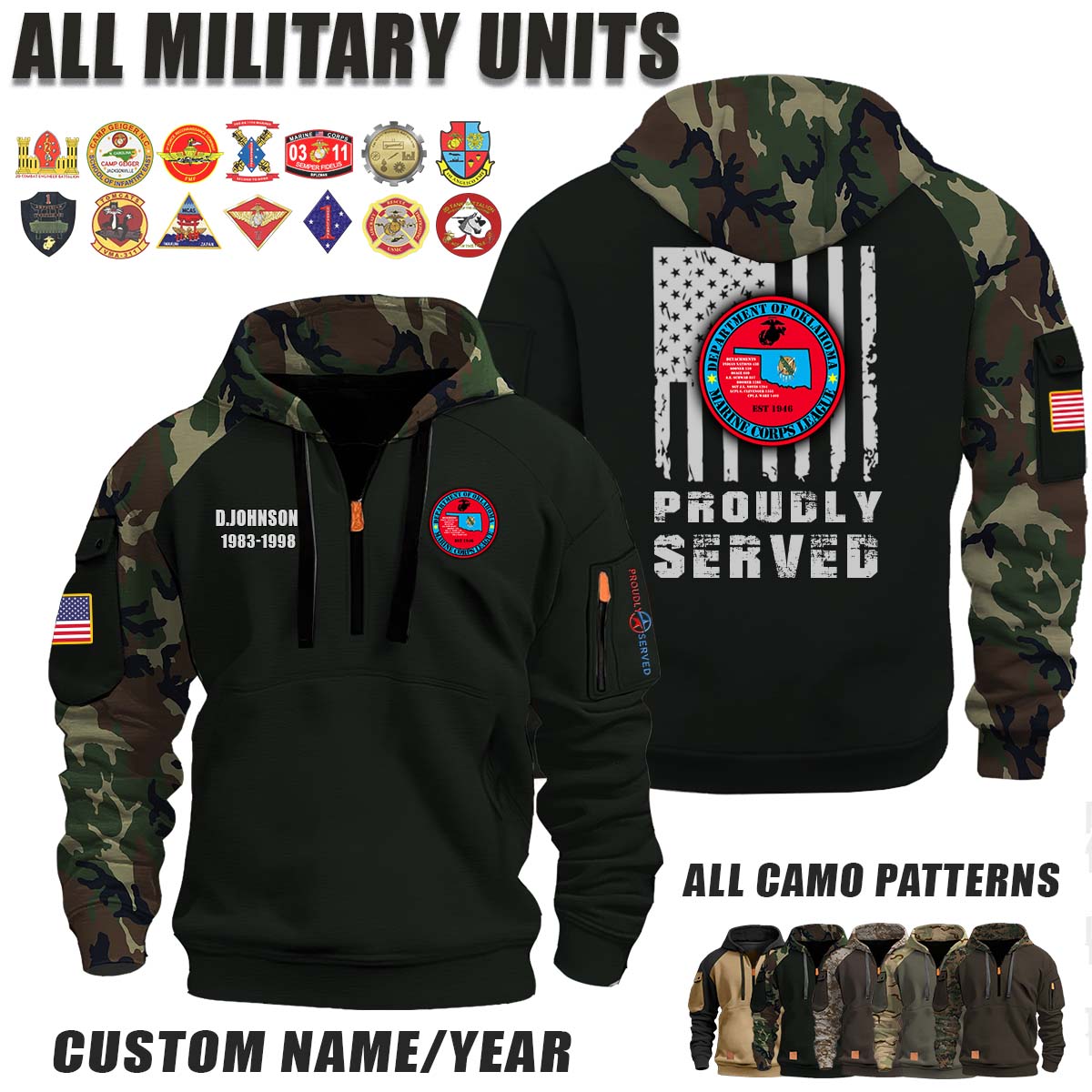 This MCL Marine Corps League Department of Oklahoma_Camo Halfzip Hoodie lets you customize your Branch, Unit, Role, Rank, and Years Served — so your service, sacrifice, and pride live on.