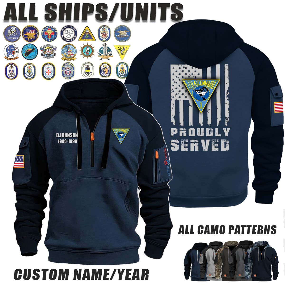 This Strategic Communications Wing 1_Camo Halfzip Hoodie lets you customize your Branch, Unit, Role, Rank, and Years Served — so your service, sacrifice, and pride live on.